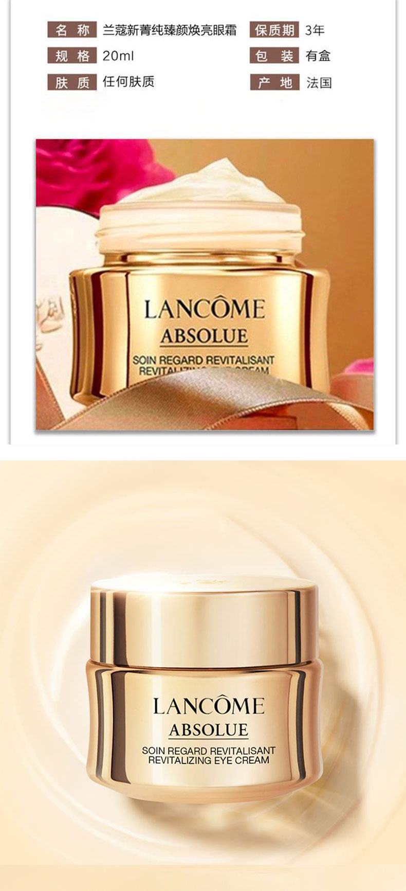 【品牌】LANCOME兰蔻 【商品名称】 :LANCOME兰蔻菁纯眼霜 20ml 赠兰蔻菁纯面霜15ml 香港直邮 【规格】:菁纯眼霜20ml+清爽面霜15ml 菁纯眼霜20ml +滋润面霜15ml 【产地】: 法国/日本(以实际收到为准) 【批次/限用日期】:有效期27年1月 【注!!!】批次更新较快,具体以实收批次日期为准 【版本】:免税版 【包装方式】:单独 无塑封 【快递】:韵达快递 【发货地】:香港 【运费模板】: 新疆,宁夏,内蒙古,甘肃+5,其他地区包邮 【不发货地区】:港澳台 西藏 【发货时效】:72小时 【售后政策】:支持七天无理由退换(不影响二次销售的基础上) |