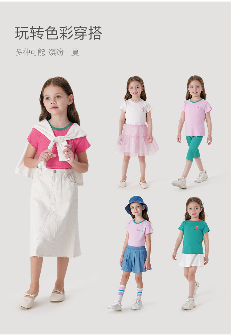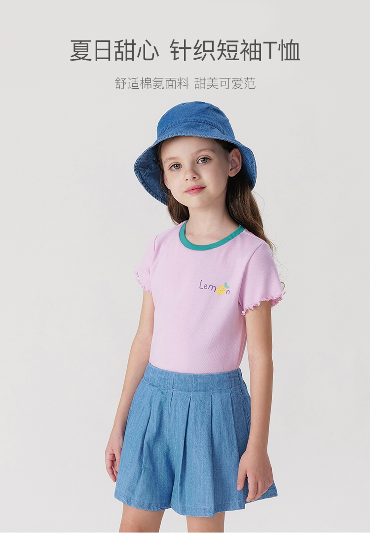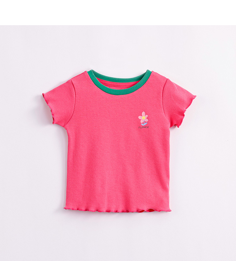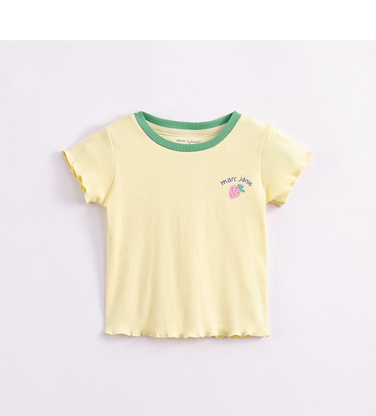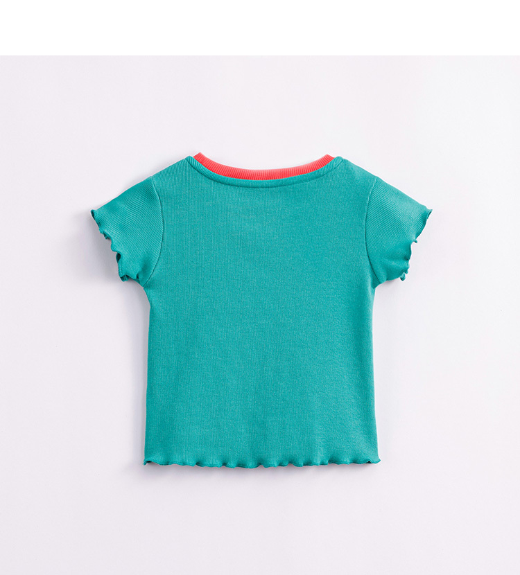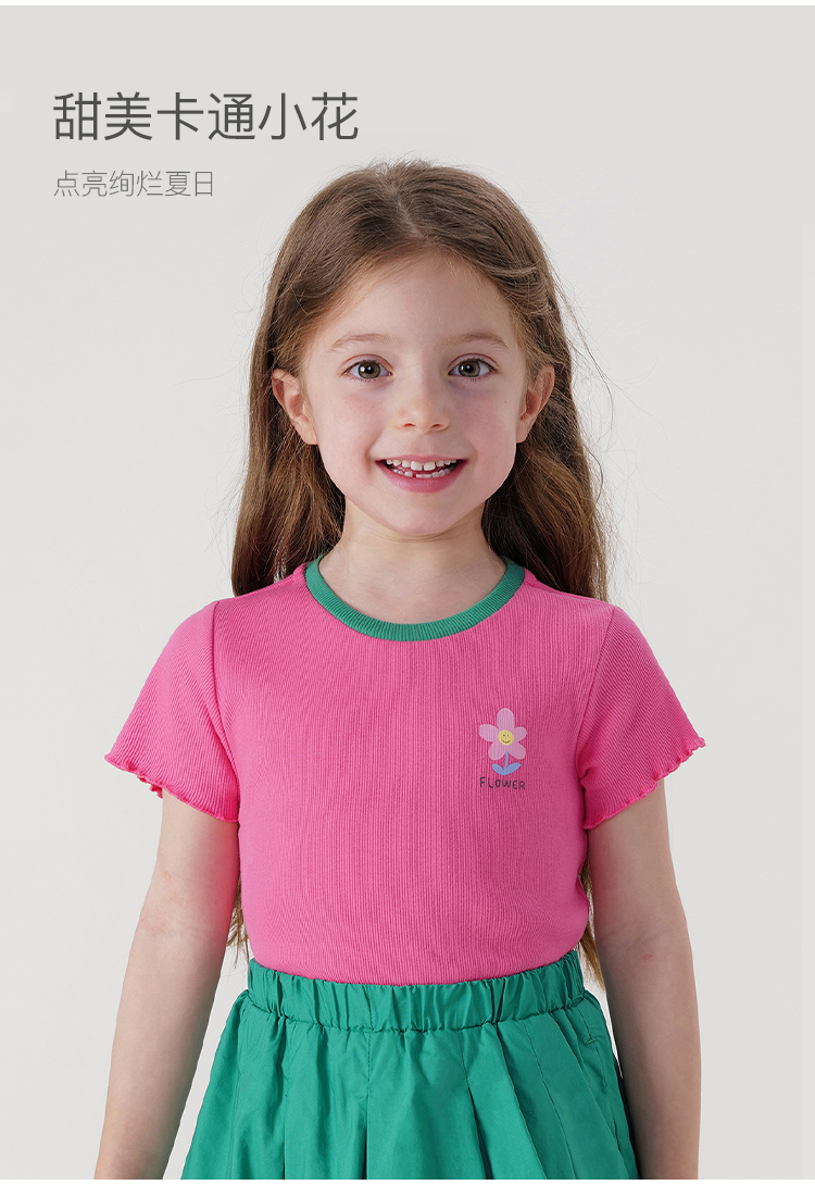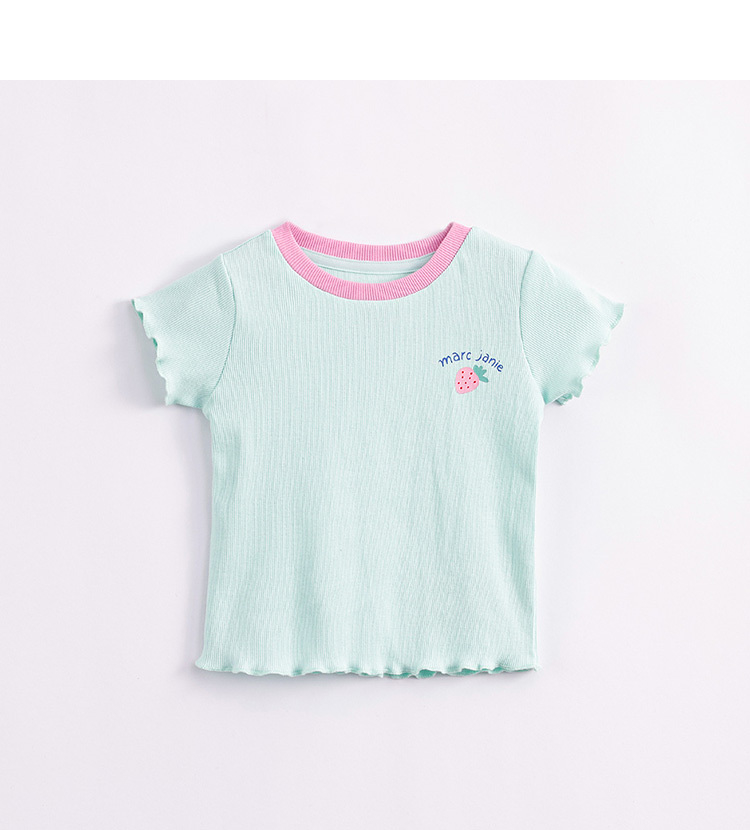 DD马克珍妮新款夏装 女童弹力针织撞色花边短袖T恤230876