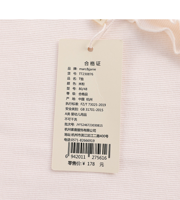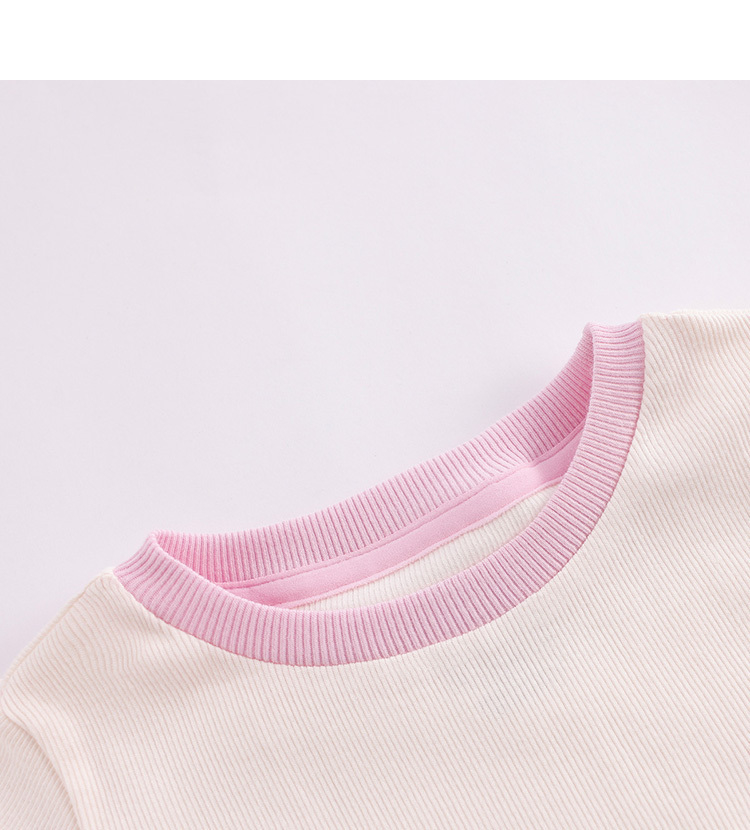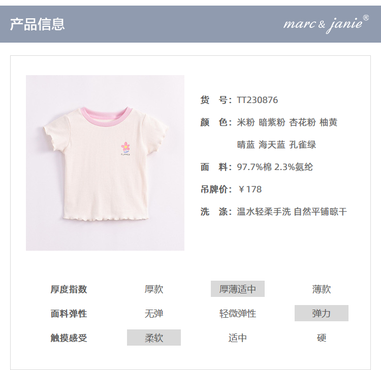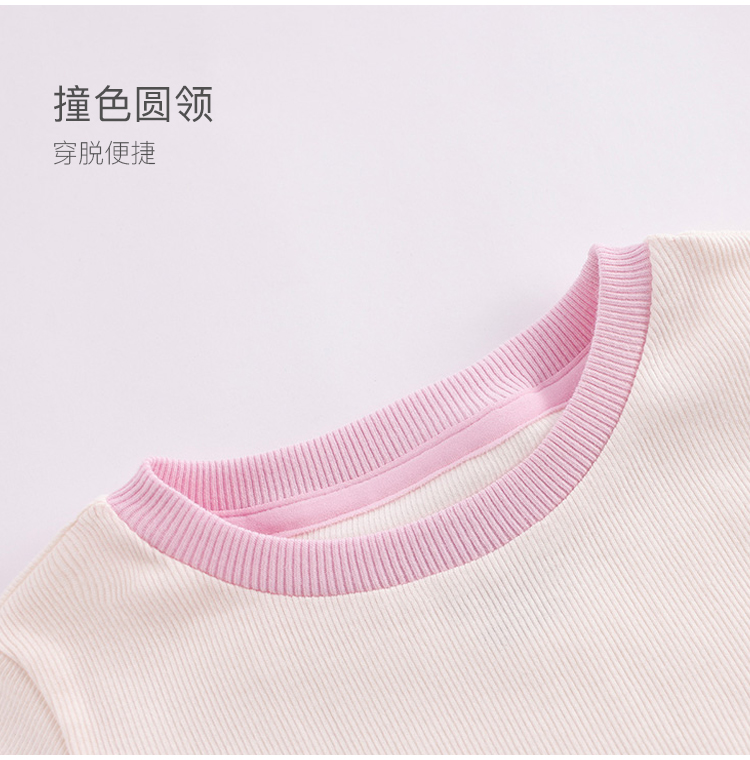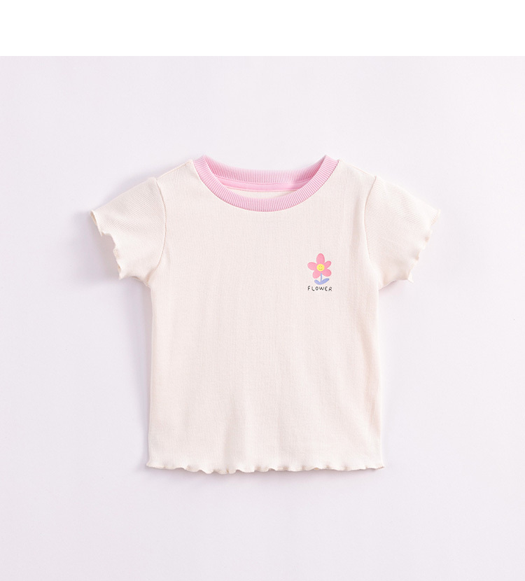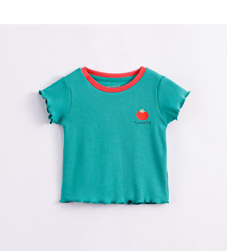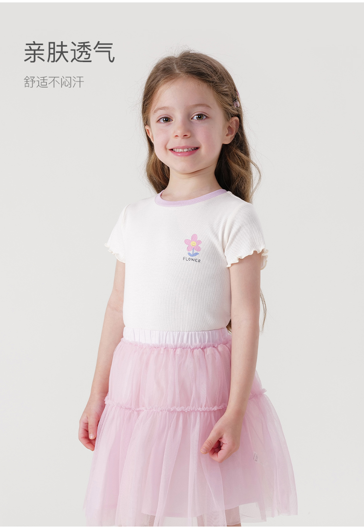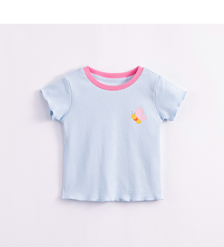 DD马克珍妮新款夏装 女童弹力针织撞色花边短袖T恤230876
