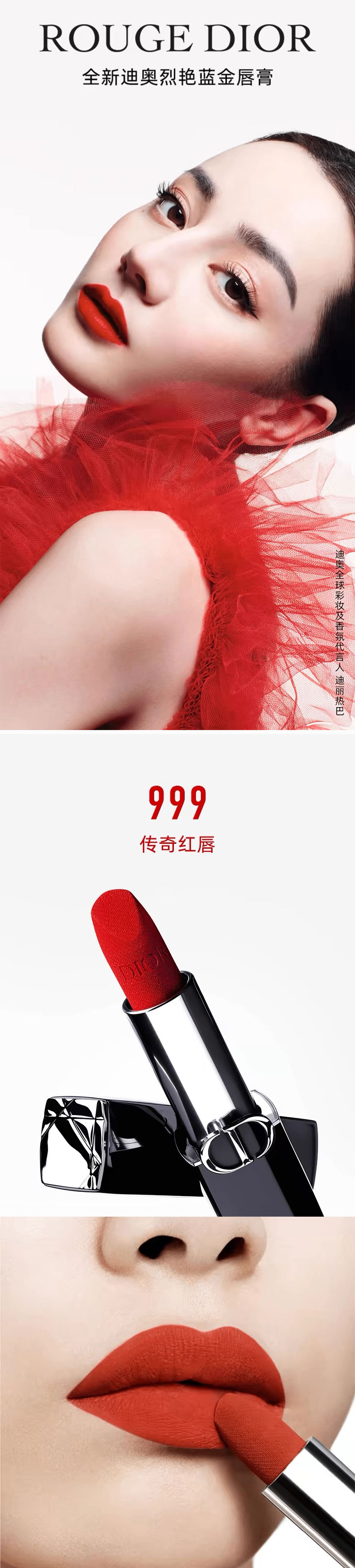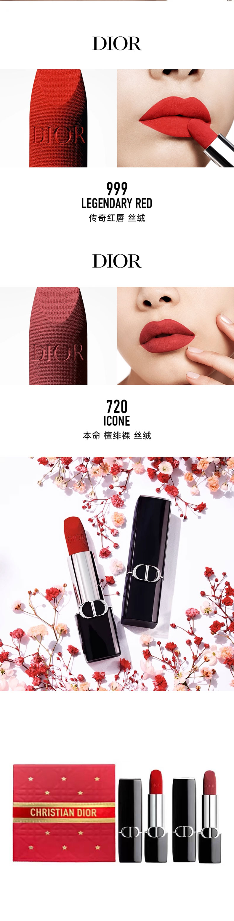 限量出完【送礼袋】Dior迪奥烈艳蓝金 磁铁款口红3.5g*2支 两件套礼盒(丝绒720+丝绒999) 香港直邮