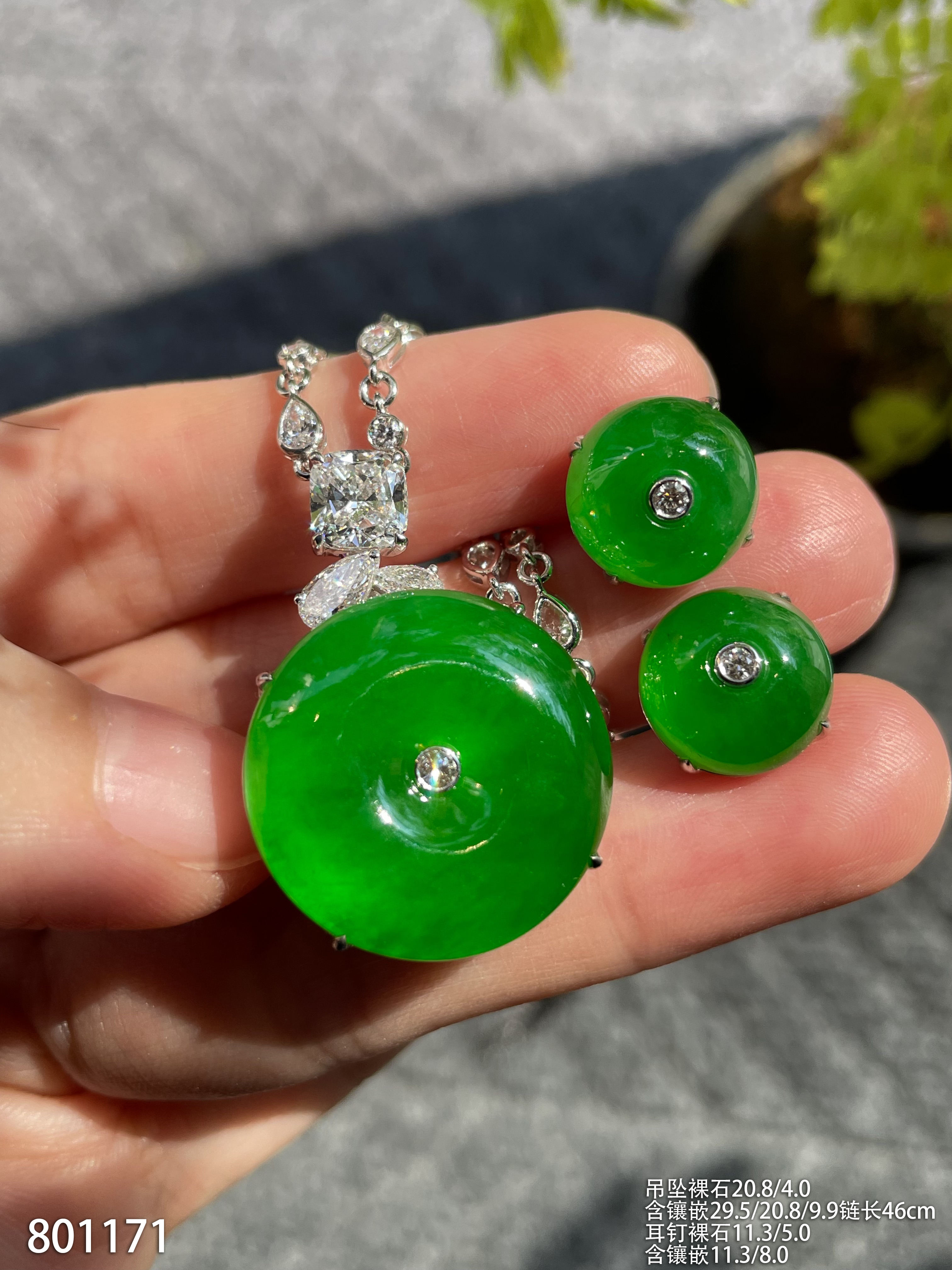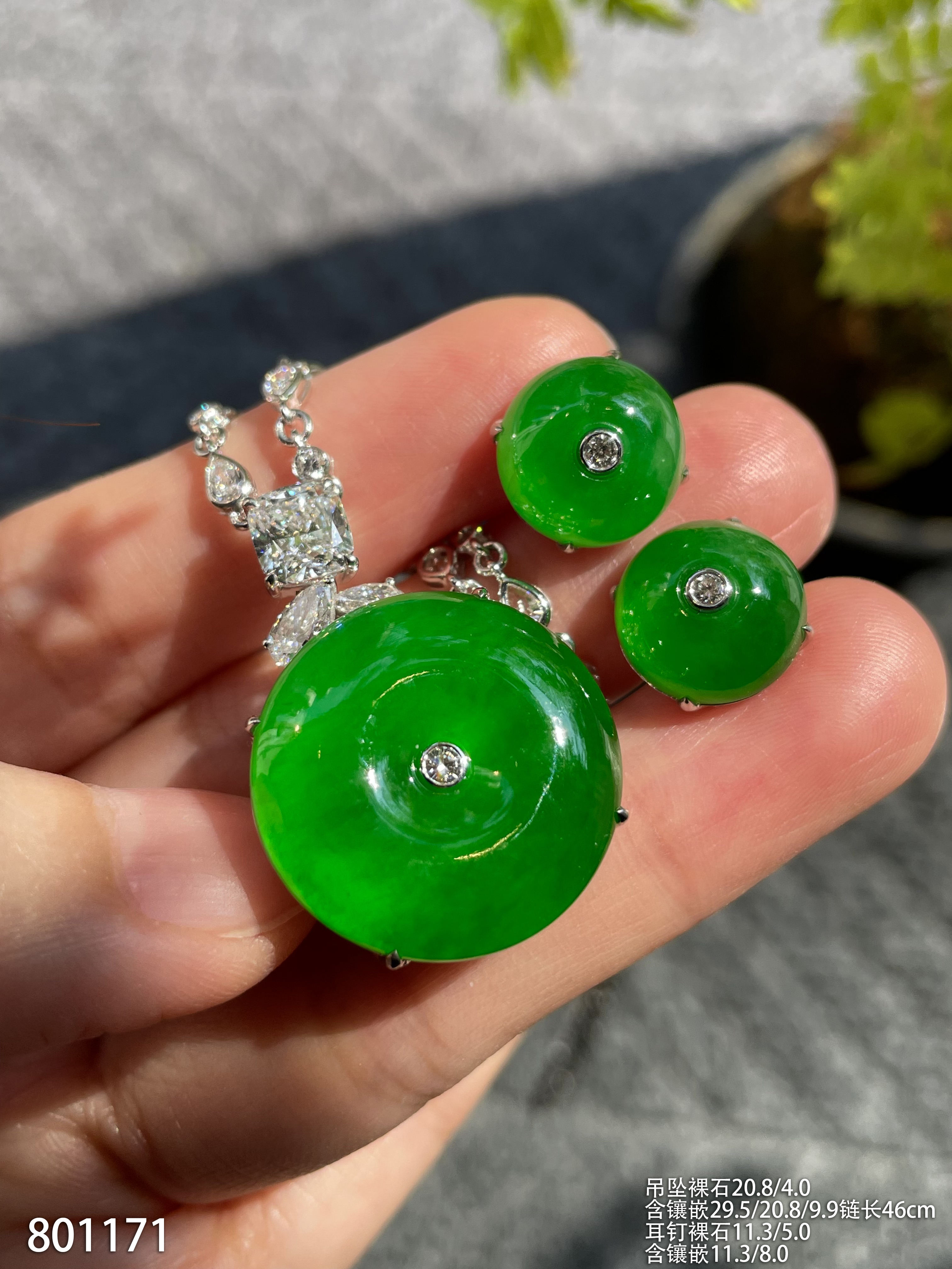 老坑帝王绿平安扣套装【801171】具体价格微信咨询