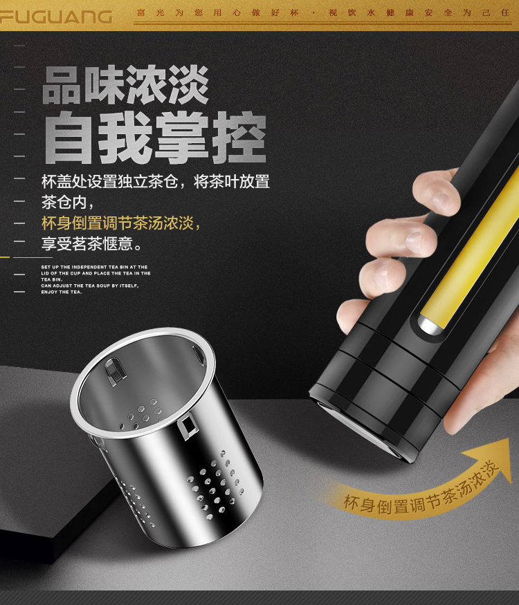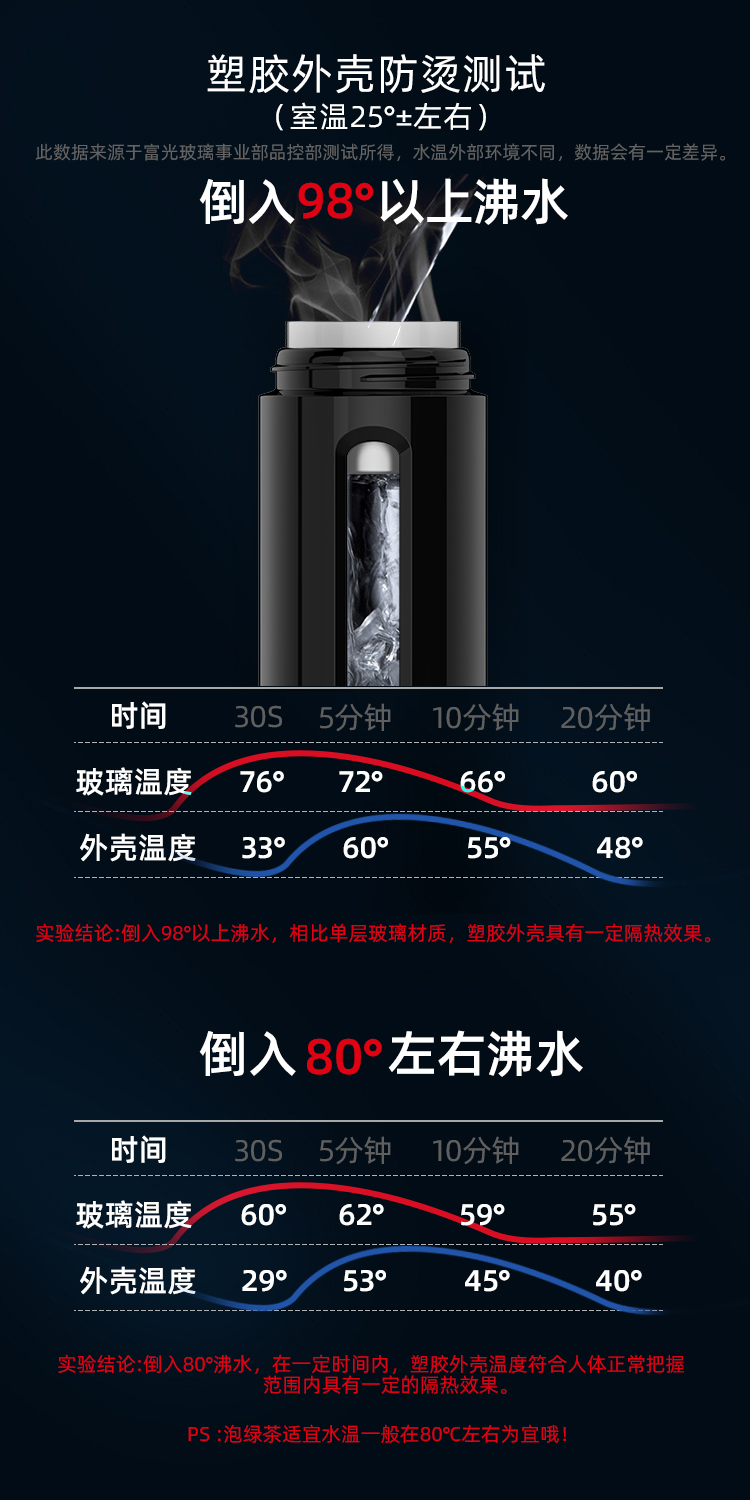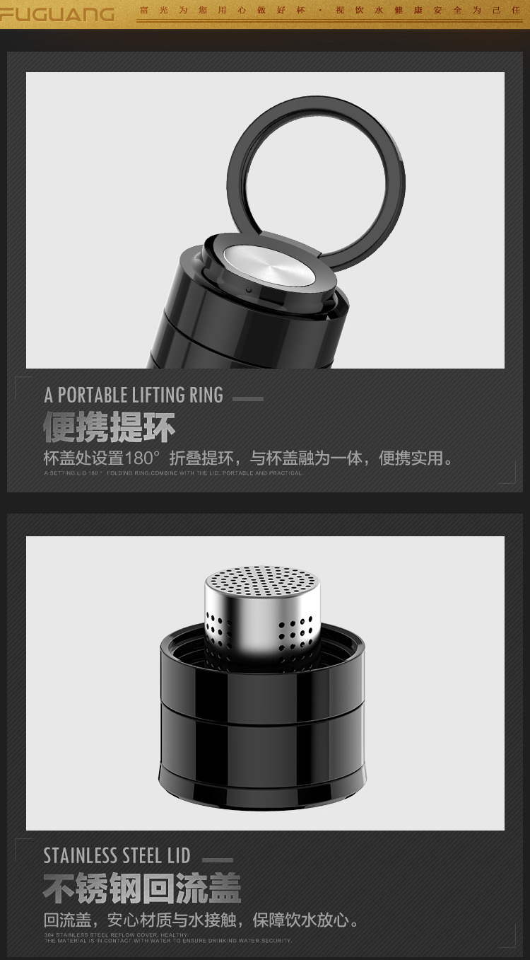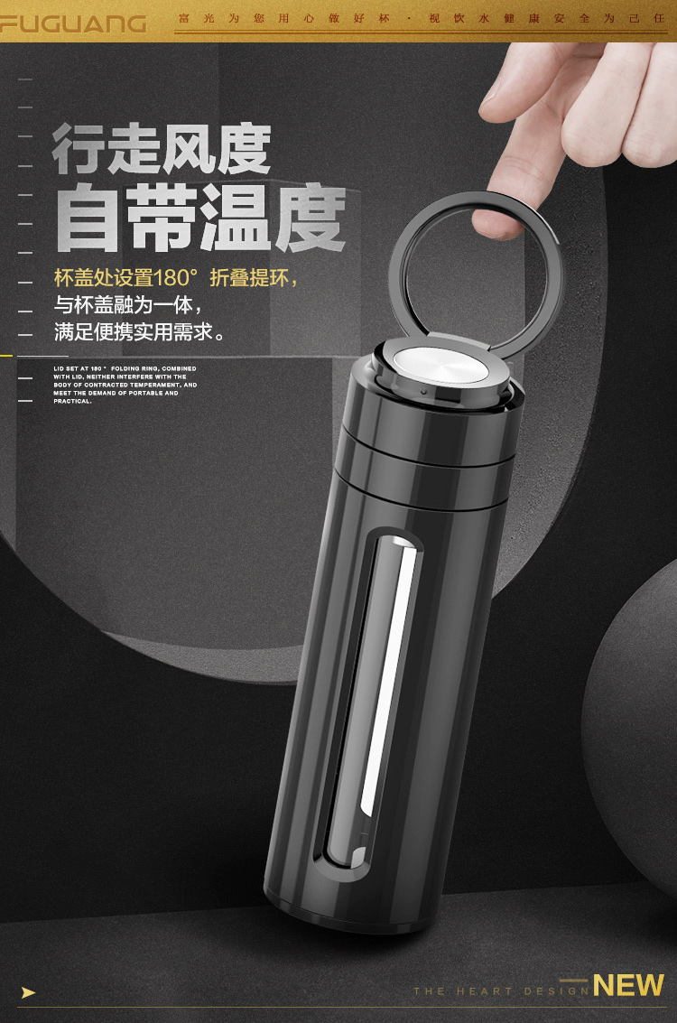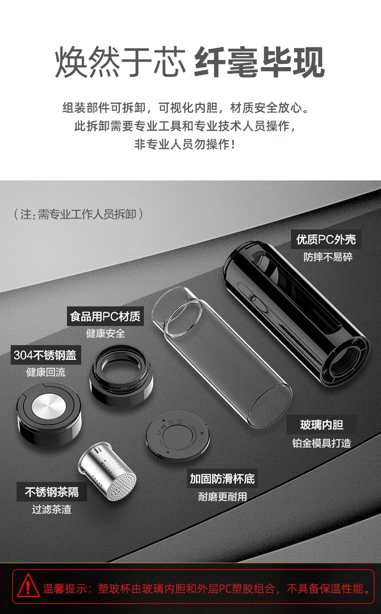 富光 雷克大容量耐摔玻璃杯 商务男士双层塑玻茶杯 茶水分离杯玻璃杯子 带提环便携过滤学生水杯500ML黑色