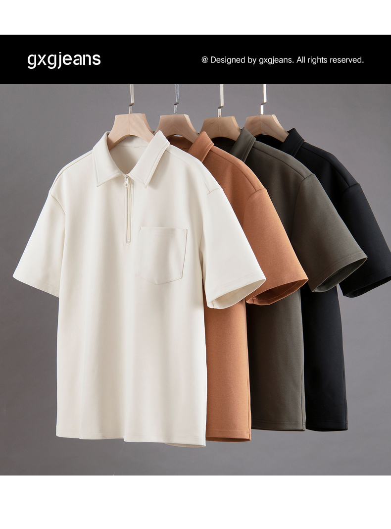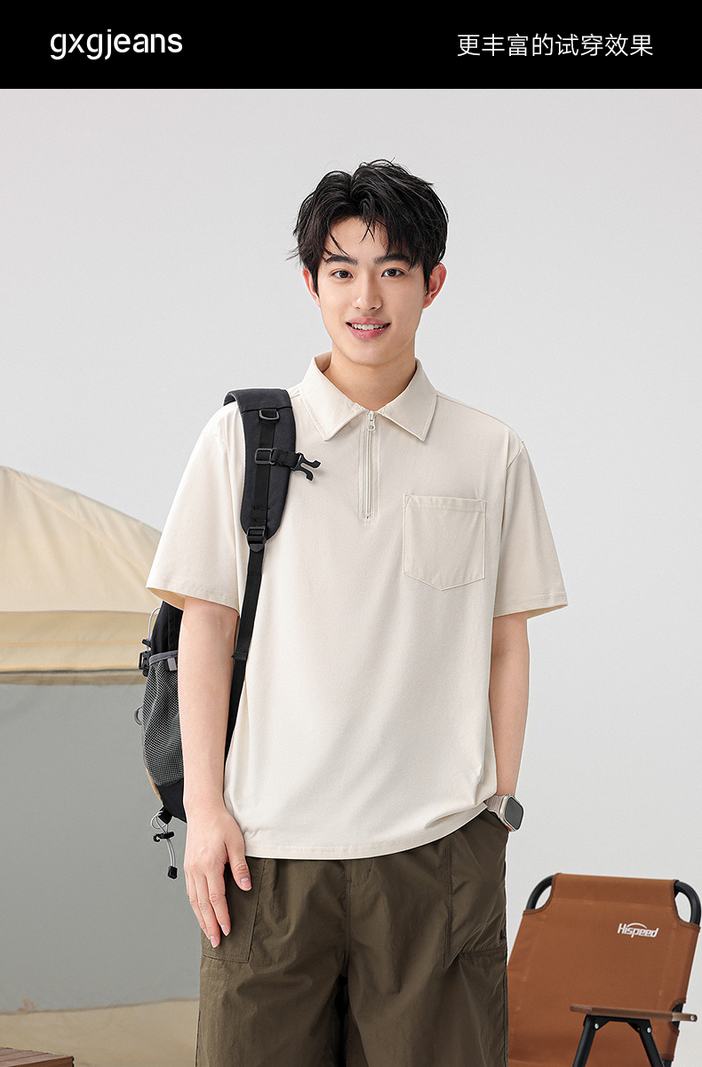 gxg.jeans男装 多色基础商务半拉链翻领短袖POLO衫 25夏热卖