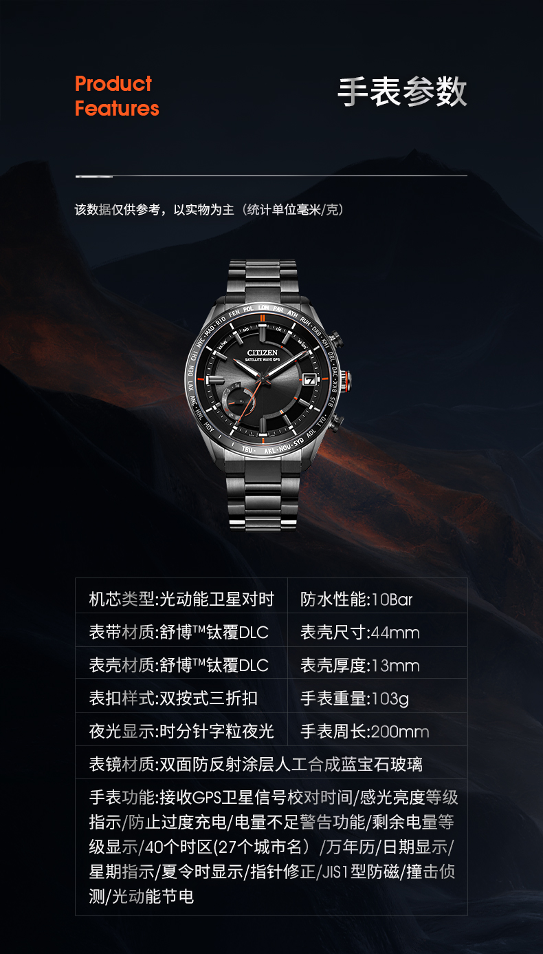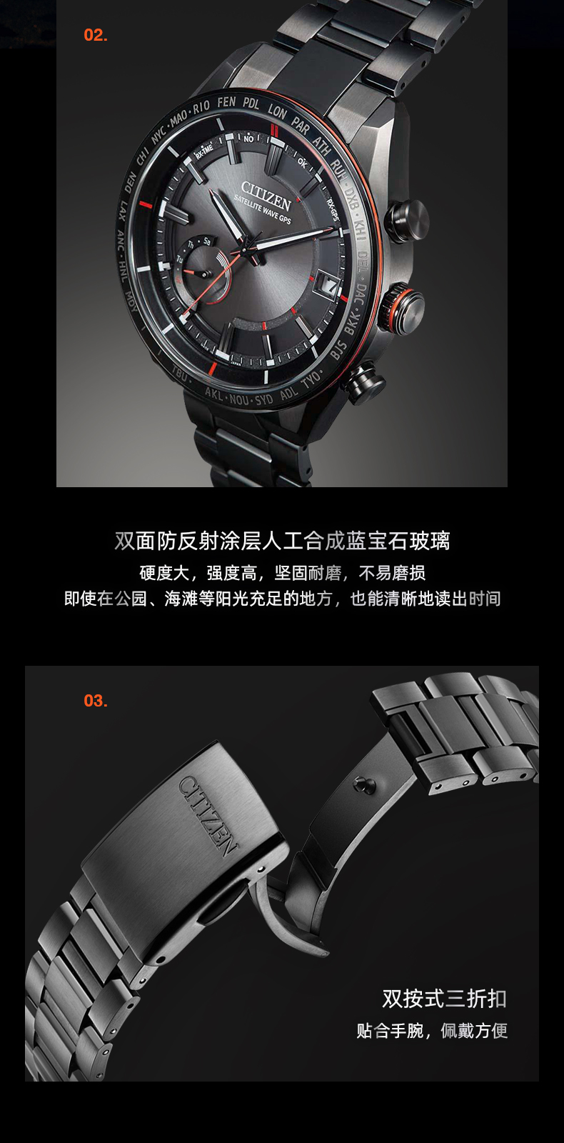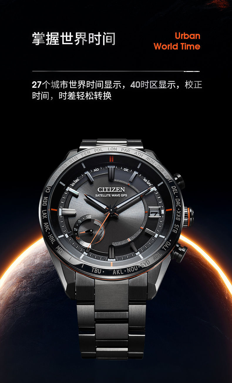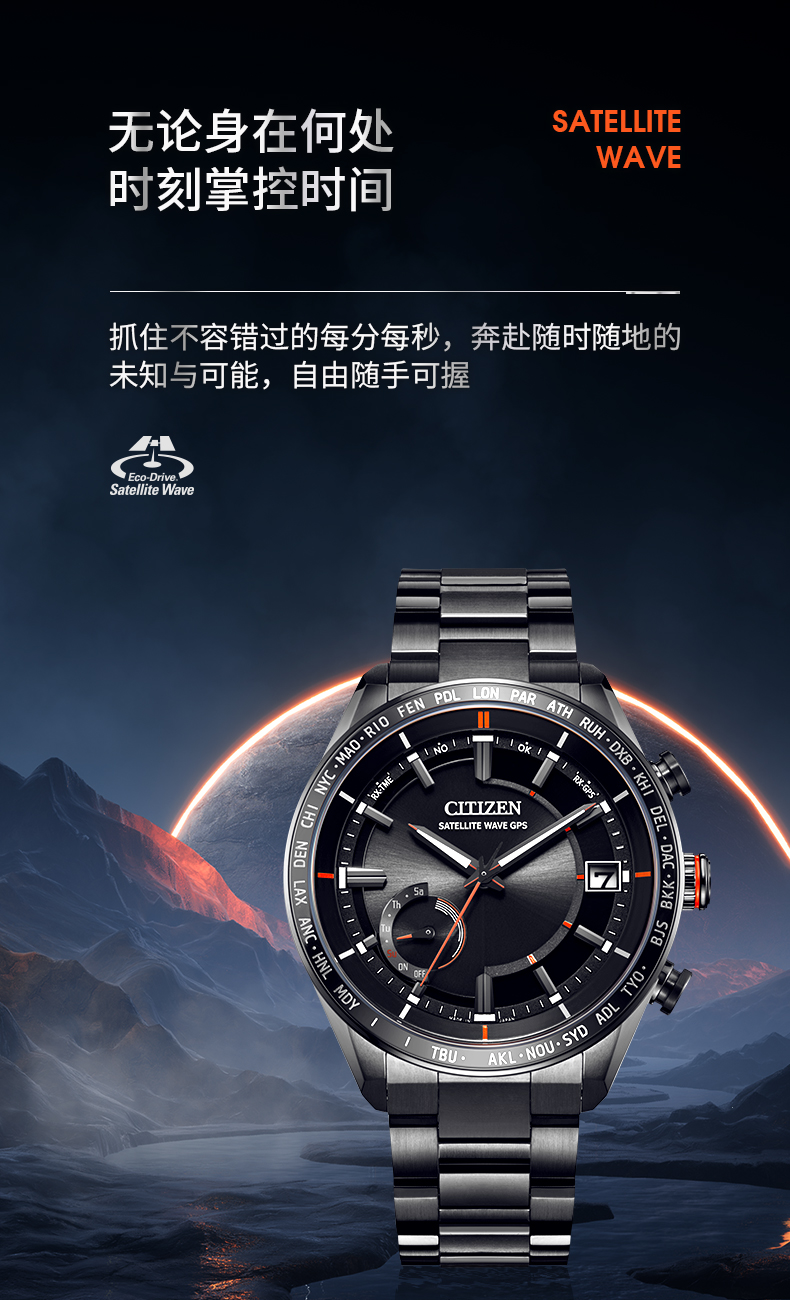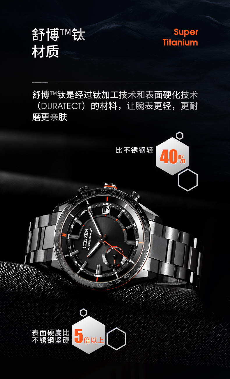 西铁城(CITIZEN)光动能卫星对时男表舒博钛日期显示CC3085-51E