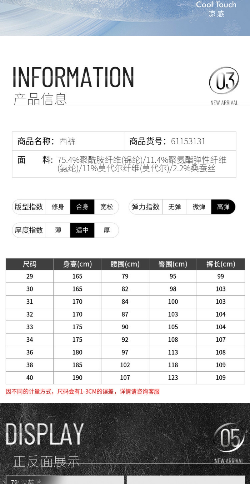 G2000男装SS26商场新款【凉感/含桑蚕丝/多面弹】商务通勤西裤61153131