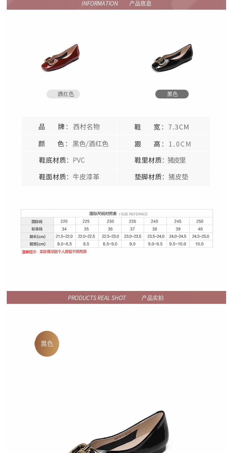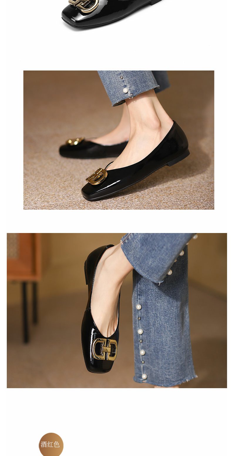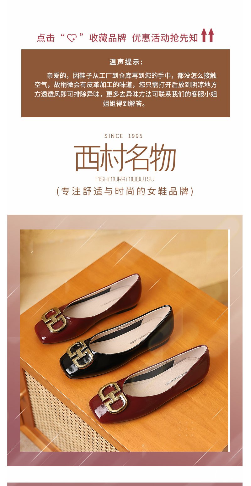 西村名物22年新款新款方头浅口金属扣饰鞋韩版百搭舒适一脚蹬女单鞋17661