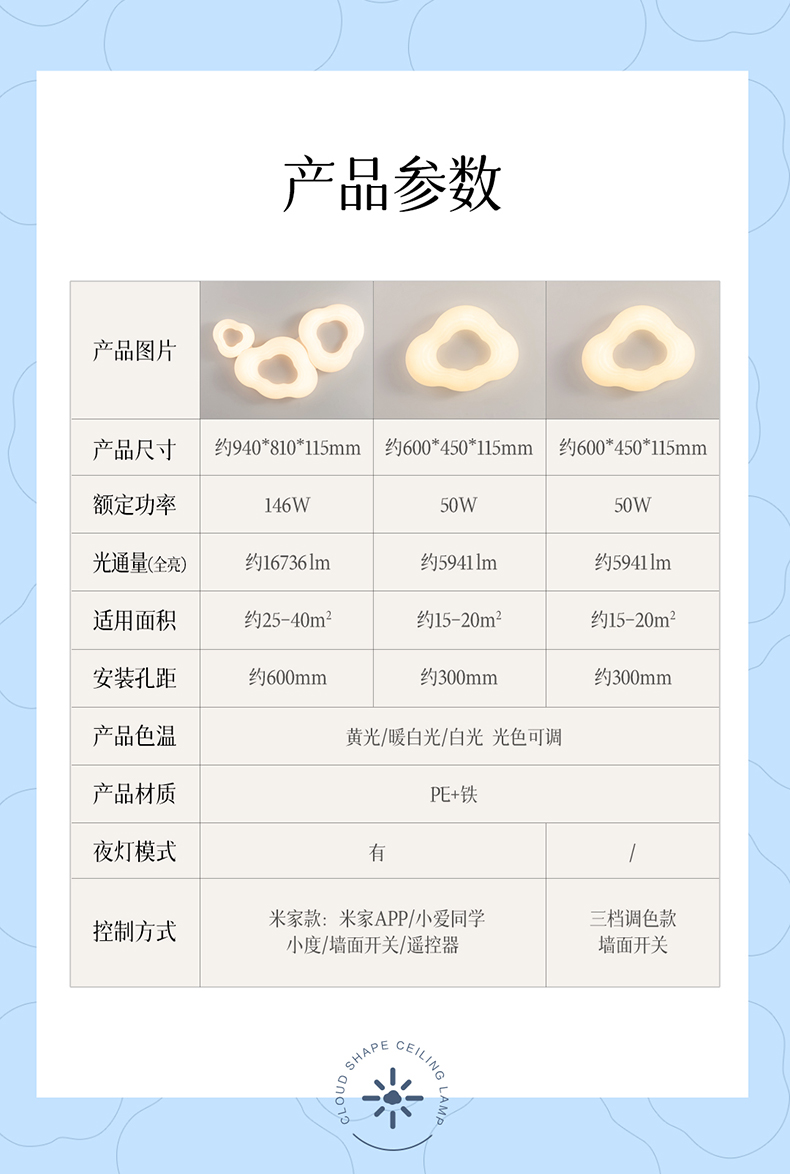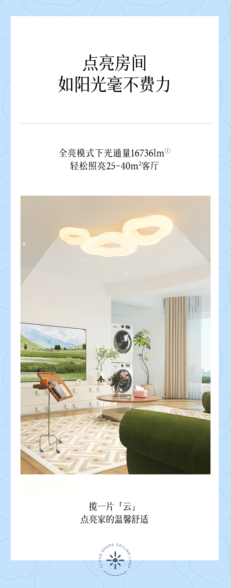 欧普(OPPLE)白云朵朵客厅奶油风高亮云朵灯吸顶灯套餐