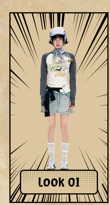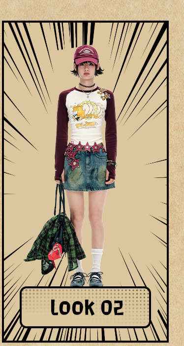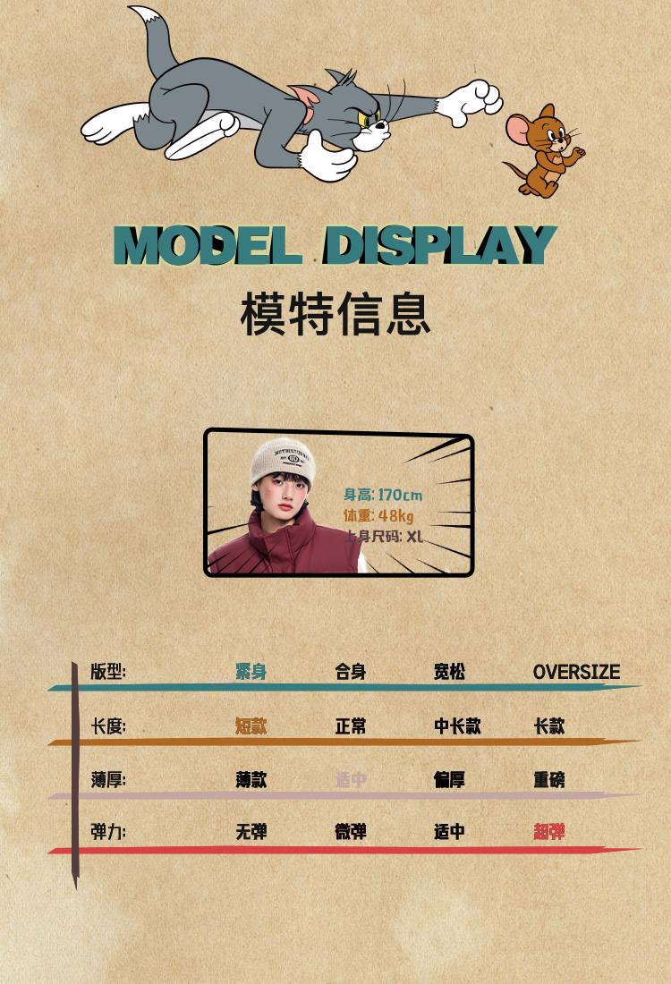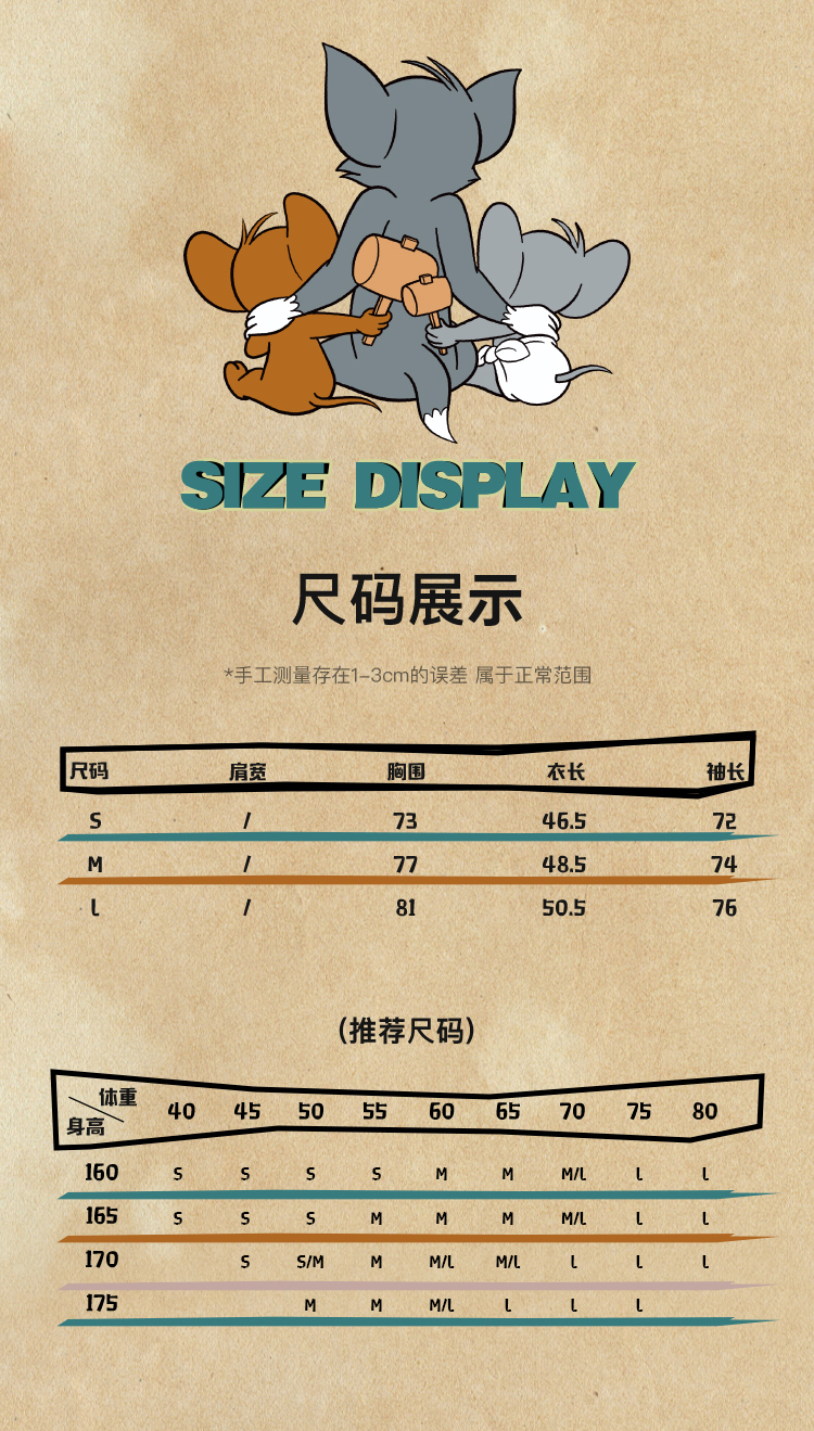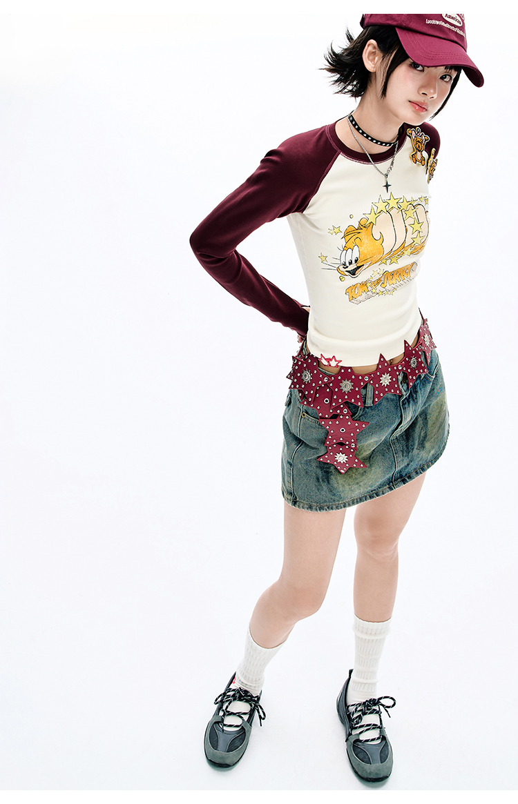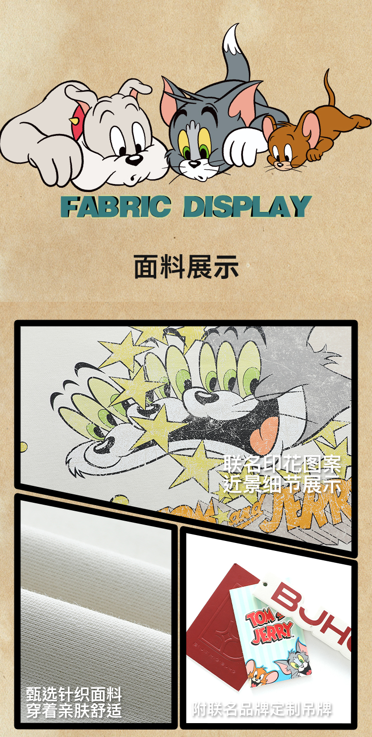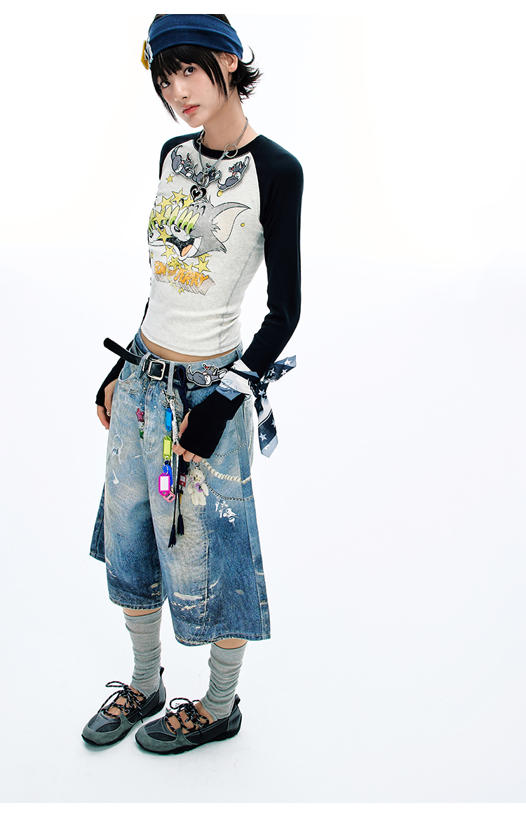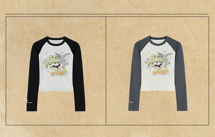 BJHG猫和老鼠联名长袖T恤女2025新款潮美式复古针织印花破洞上衣