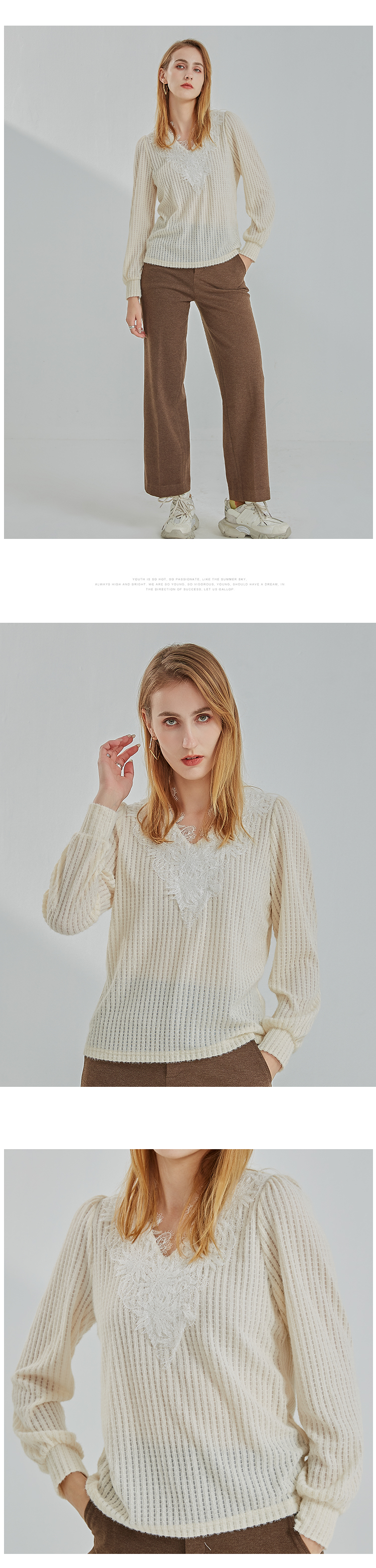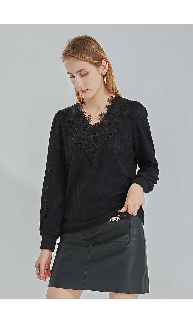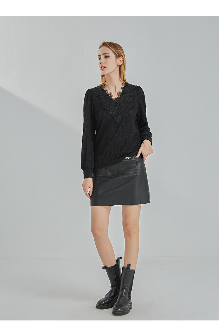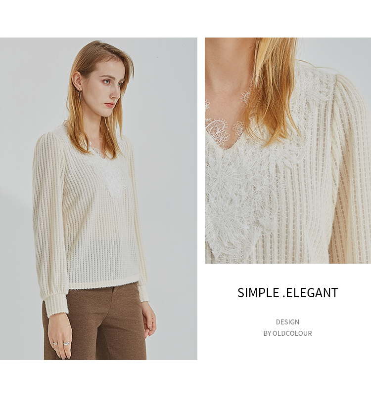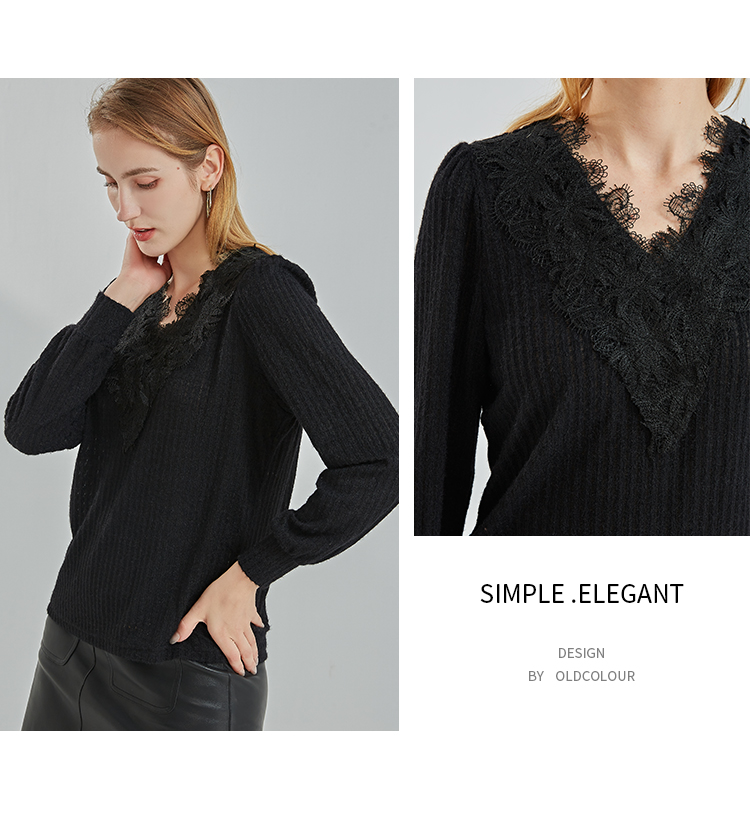 oldcolour2021冬季新款时尚气质修身百搭V领长袖T恤N41023101