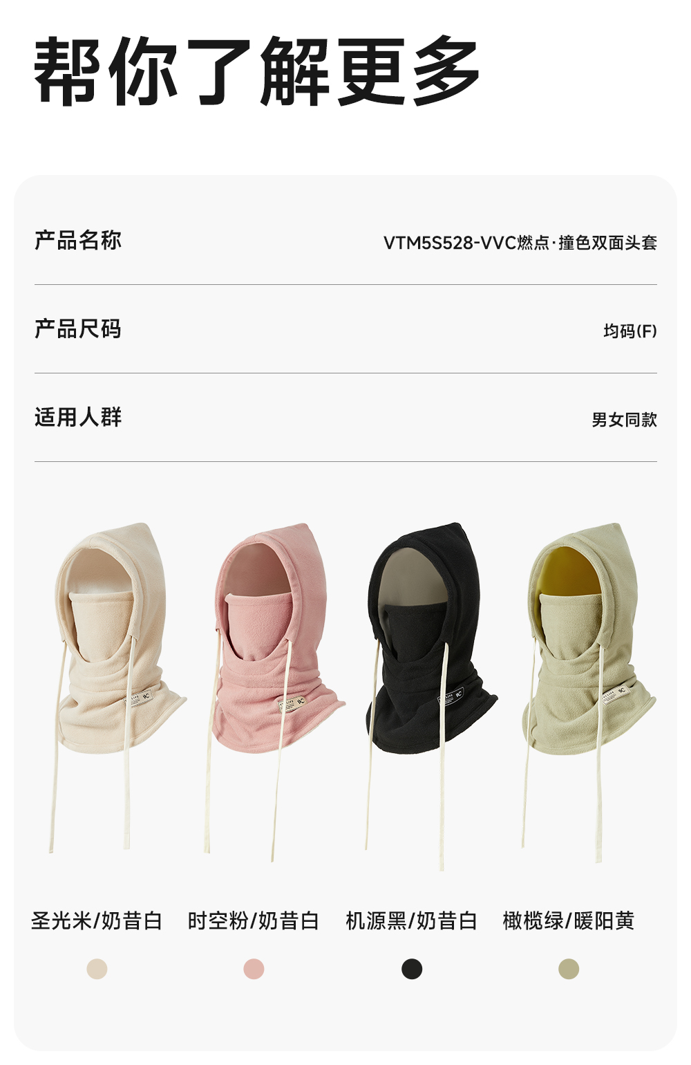 VVC 燃点·撞色双面头套 保暖锁温 微弹不勒 头面颈耳全面包裹 48小时发货