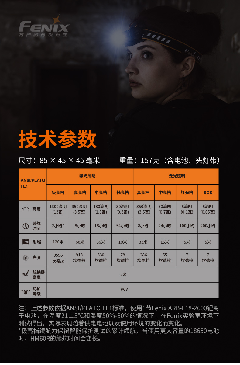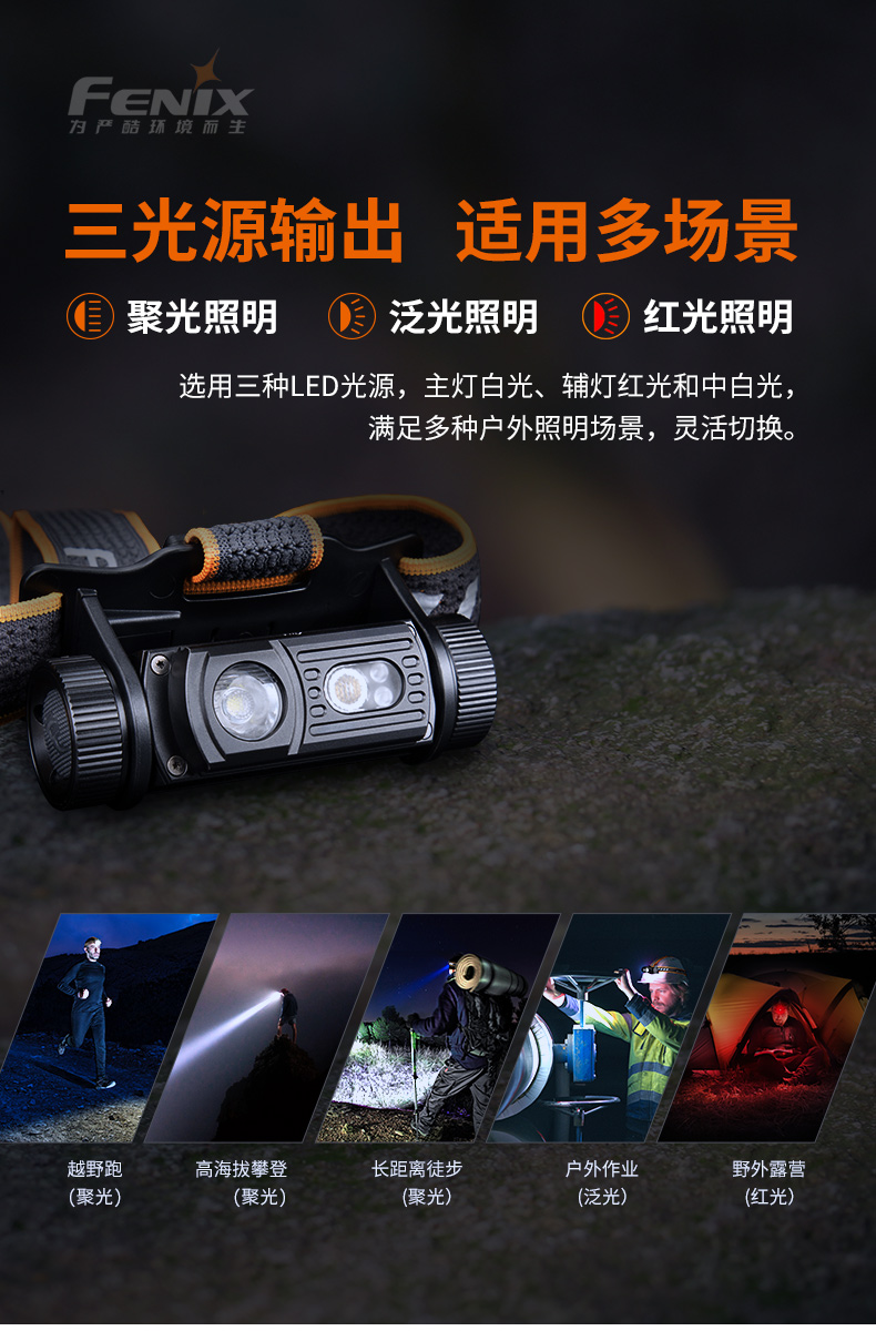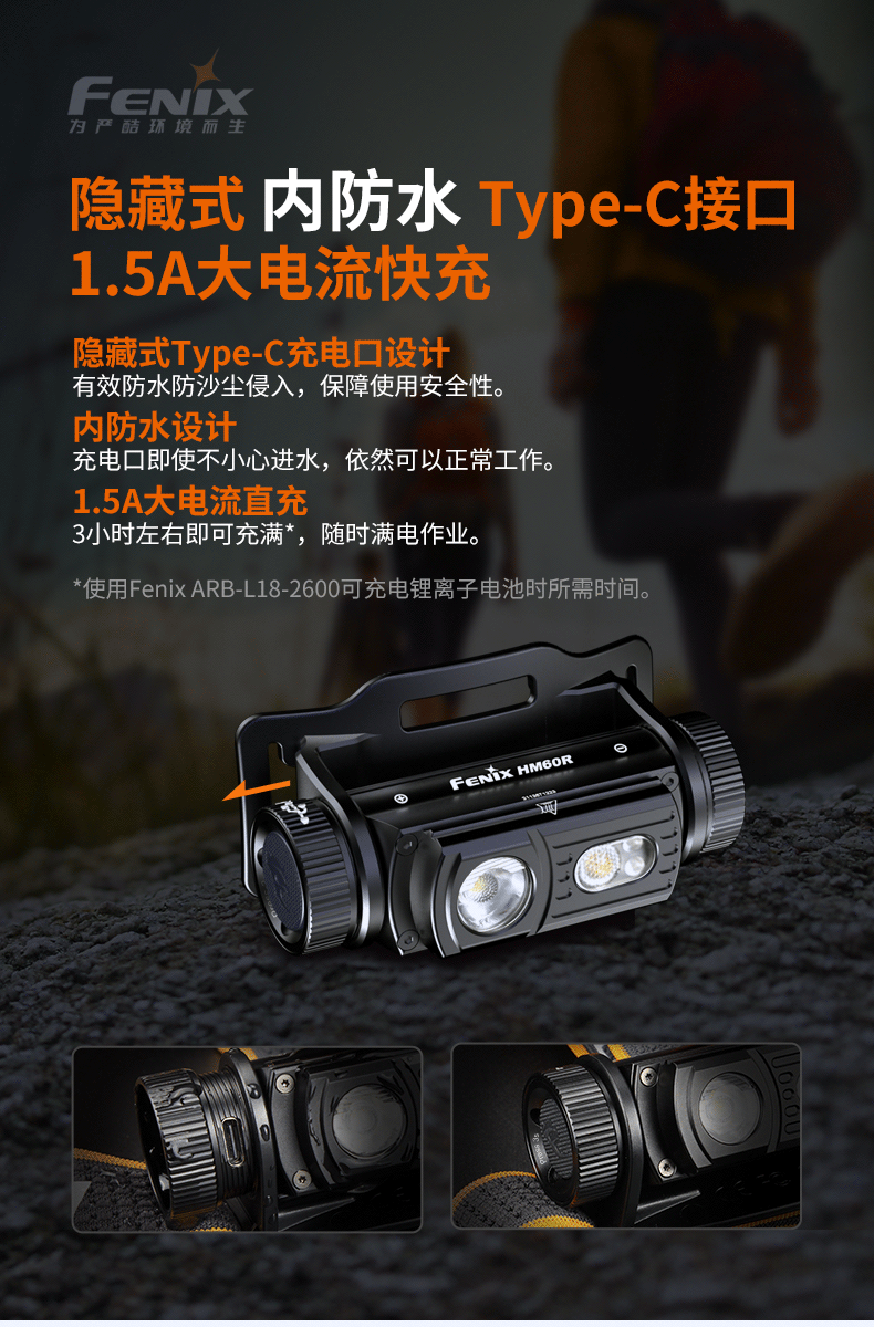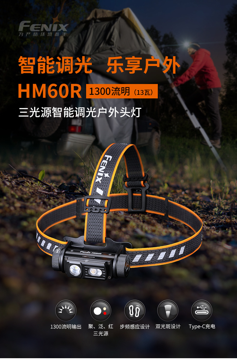 Fenix菲尼克斯HM60R户外跑头戴强光充电超亮感应头灯18650锂电池