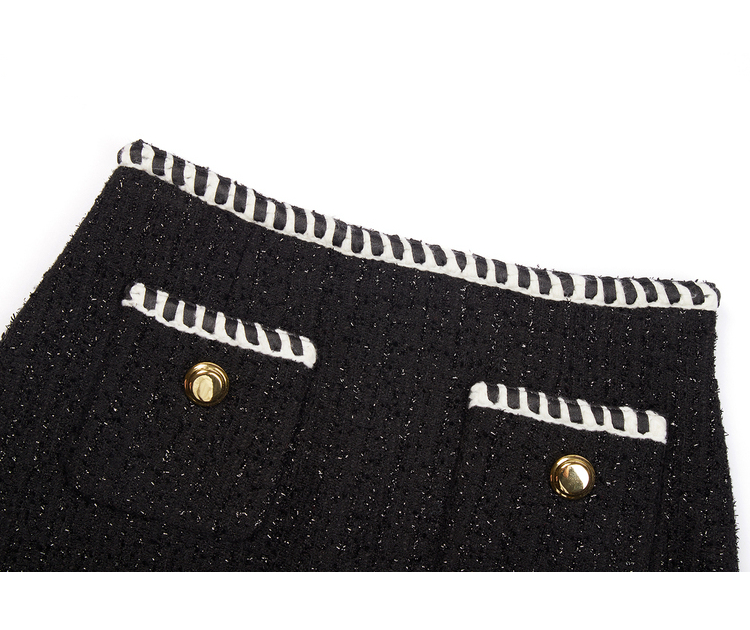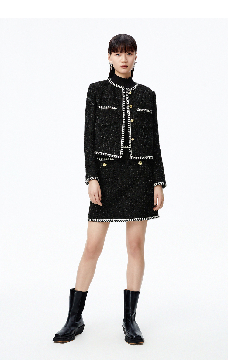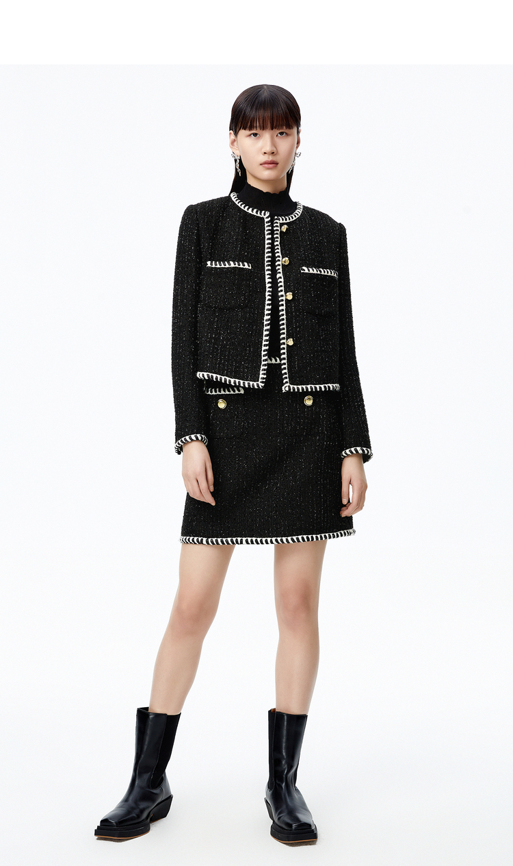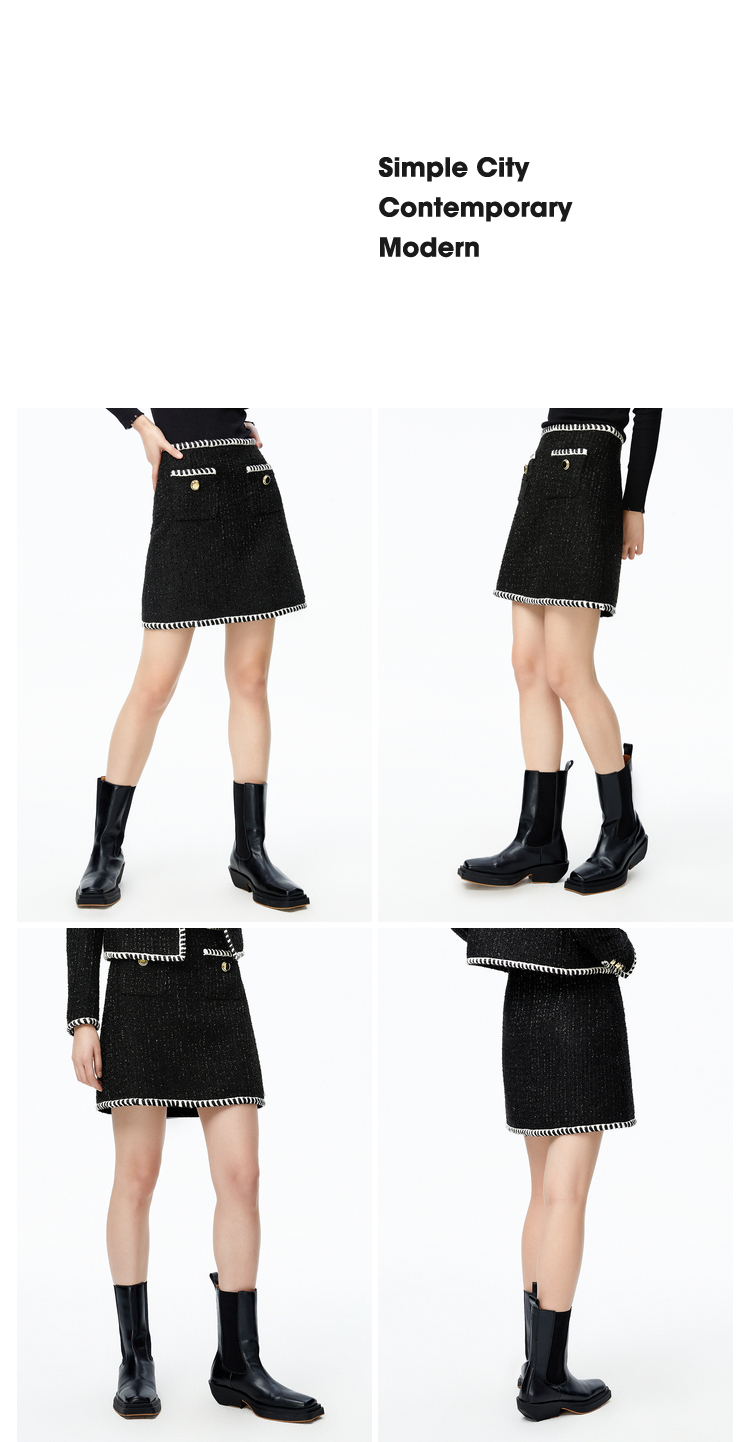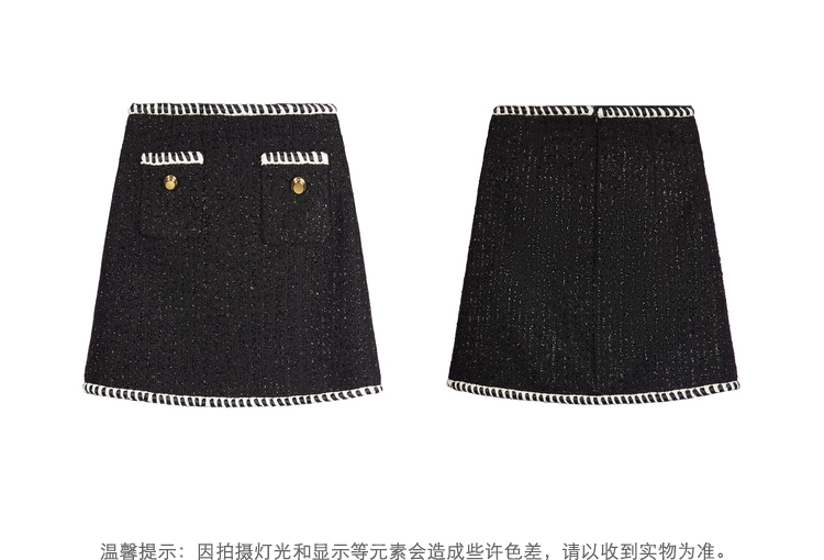 NEELLY纳俪商场同款半身裙女小香风撞色织带设计高腰毛呢A字裙秋N22083E01113