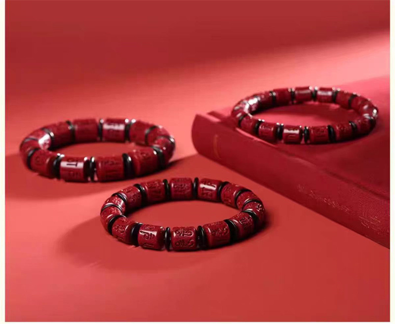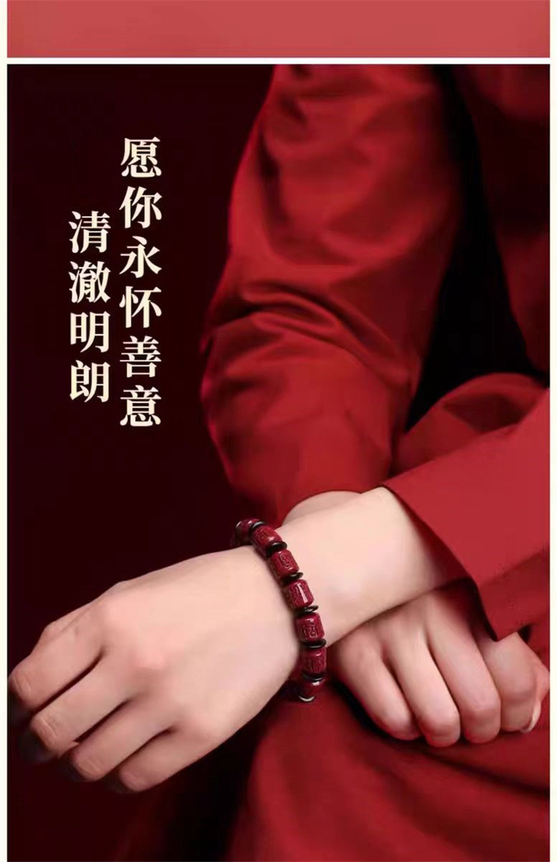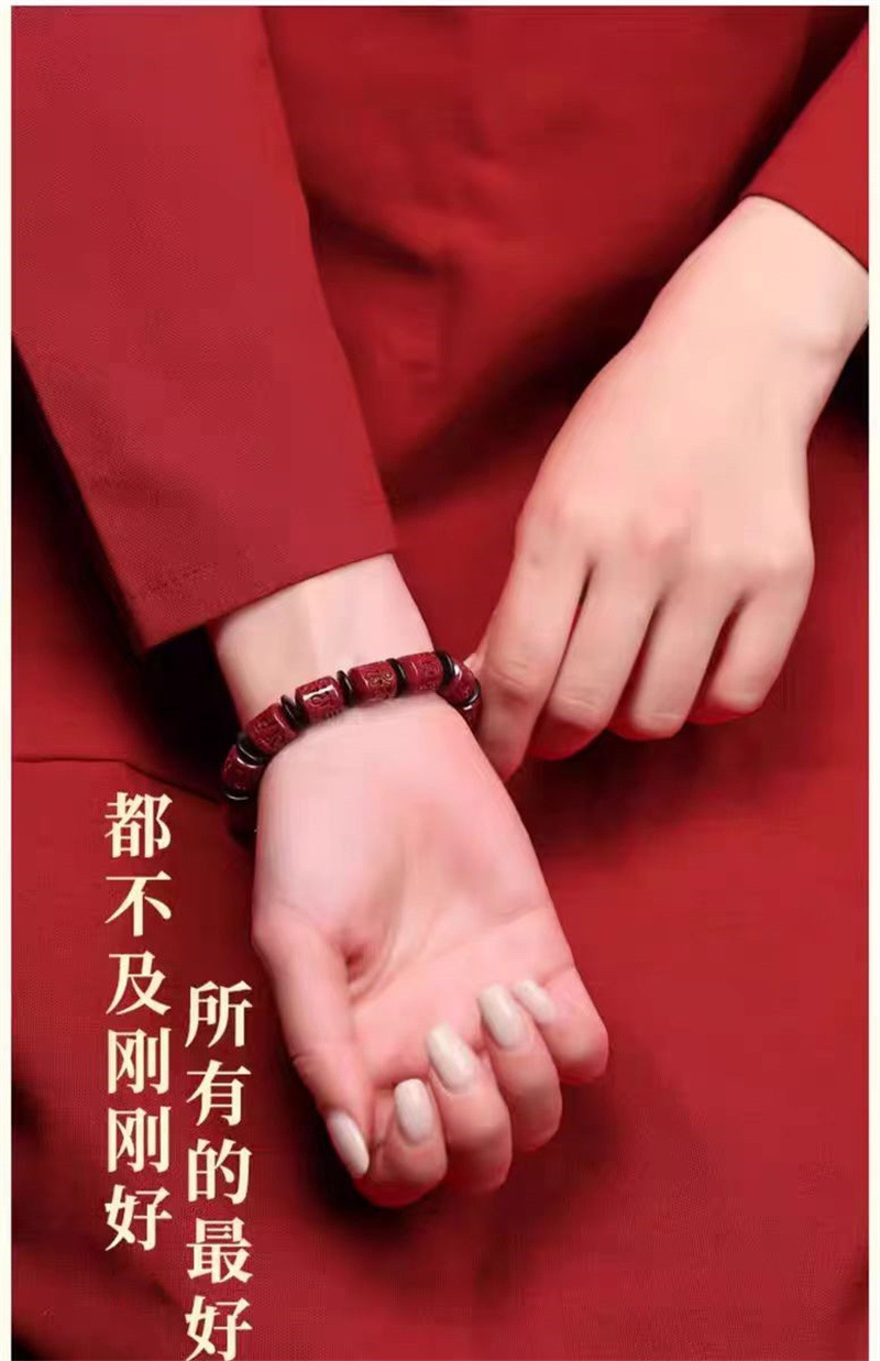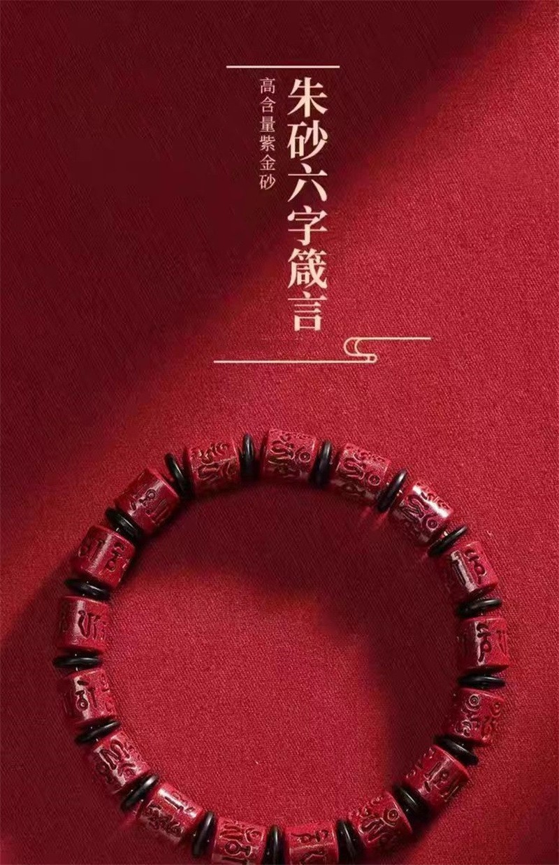 六鑫珠宝 天然朱砂六字真言紫金砂佛珠念珠手串