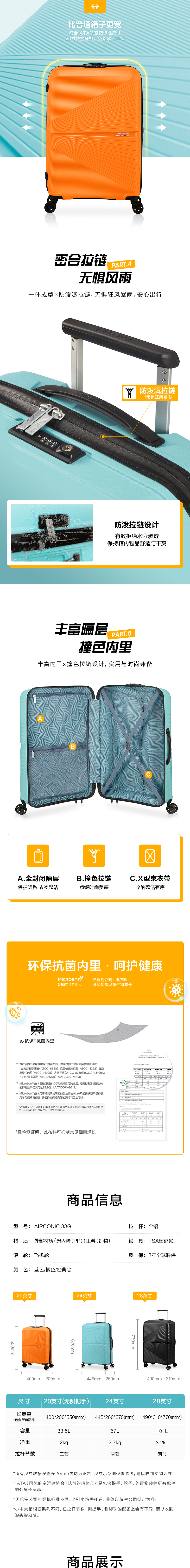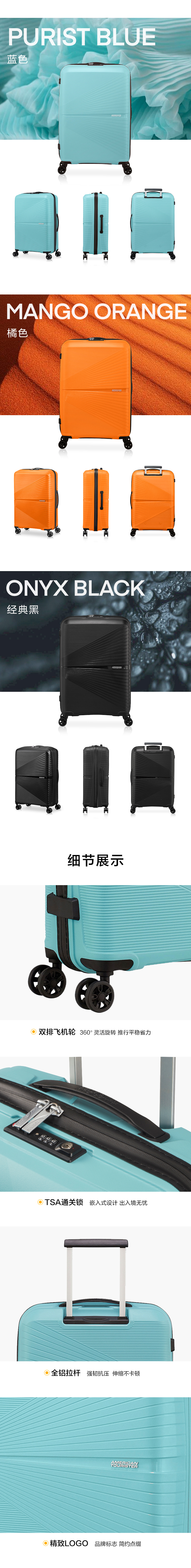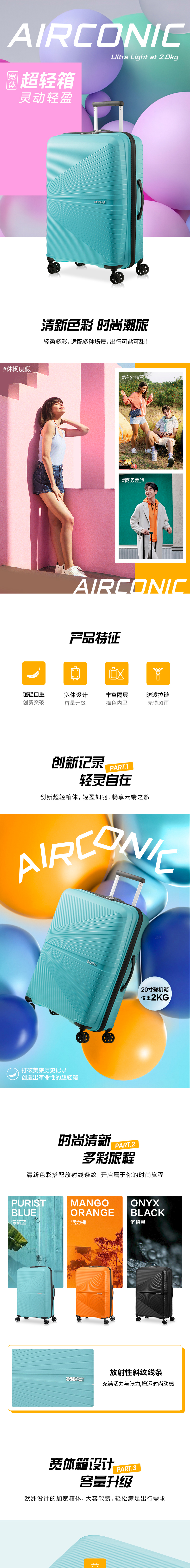 【美旅】AIRCONIC系列多彩斜纹抗菌内里PP材质拉杆箱88G