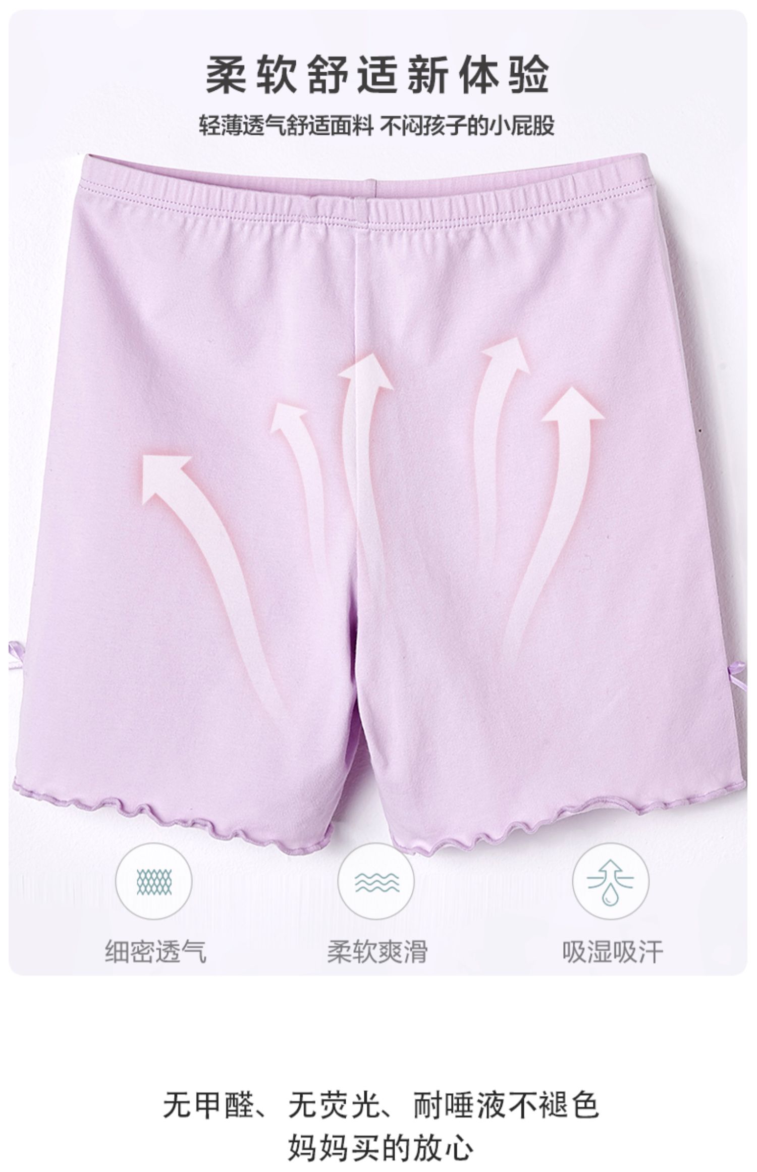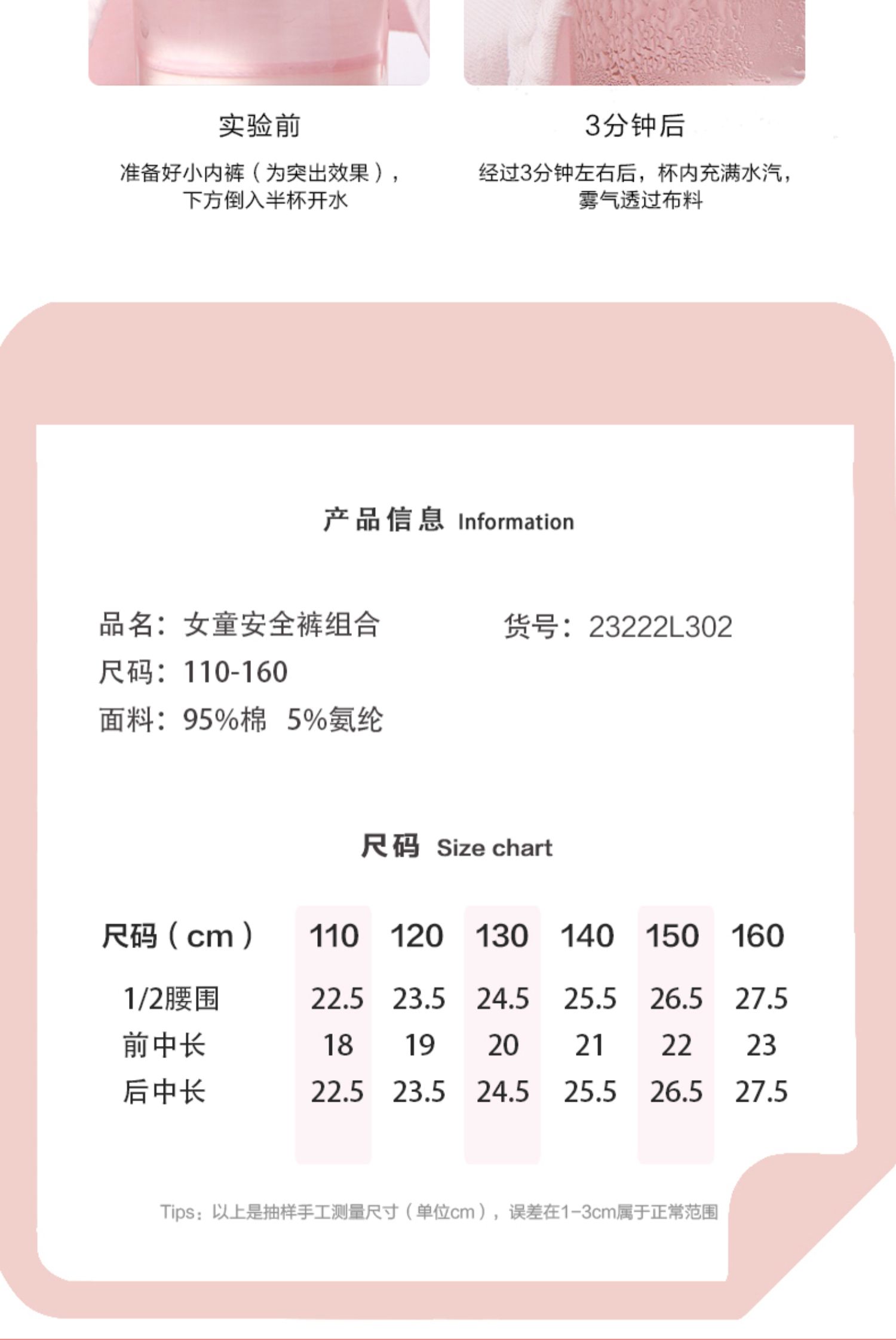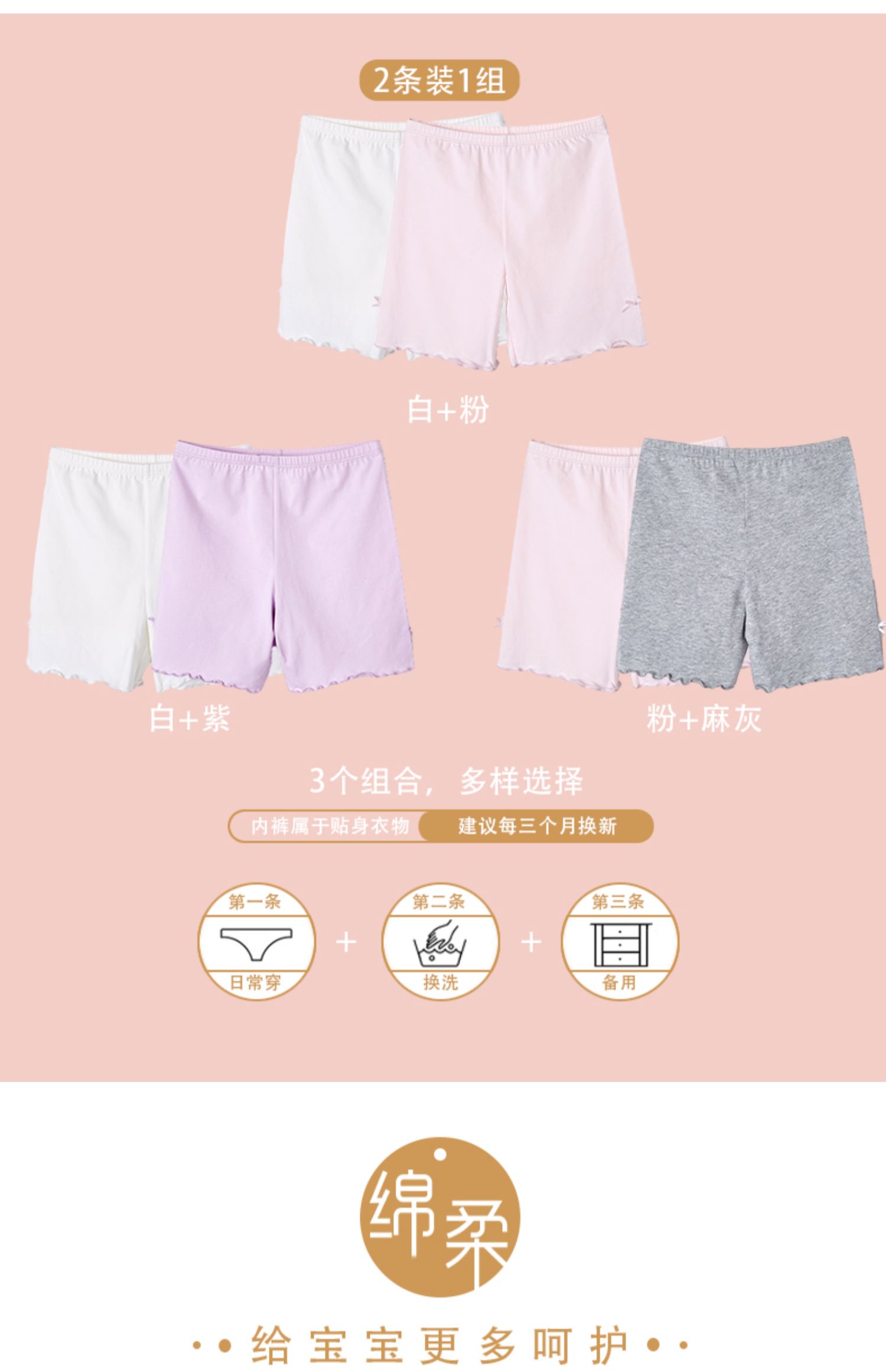 笛莎Deesha 女童安全裤2022夏季新款女孩儿童甜美舒适木耳边防走光两条装