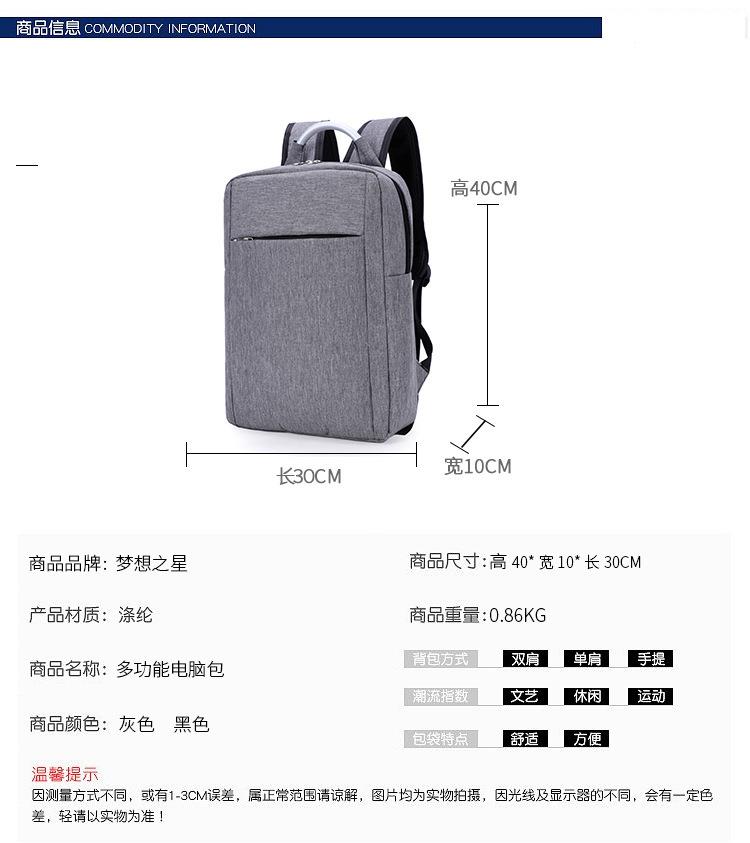 跨境休闲商务电脑双肩包新款大容量男士商务旅行背包印制LOGO批发