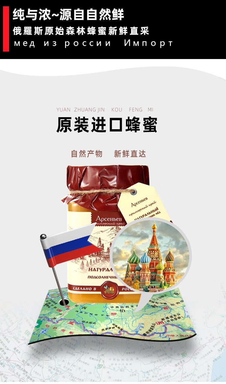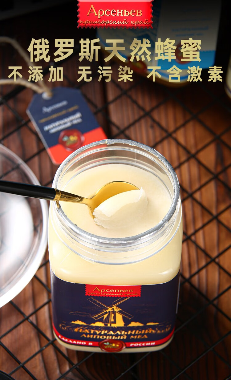 俄罗斯俄蜜源麻绳椴树蜜500g/033727 天然结晶椴树蜜冲饮涂抹面包