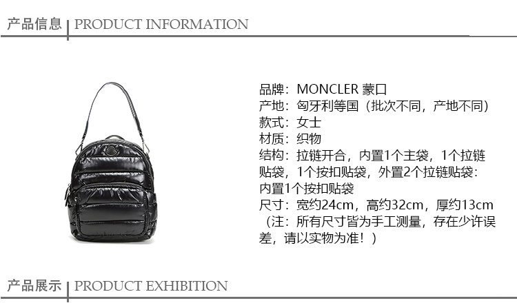 【现货秒发】Moncler/蒙克莱 女士织物双肩包 0067000 68950