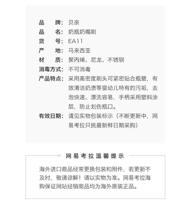 【一般贸易】日本贝亲Pigeon贝亲尼龙奶瓶奶嘴刷 EA11