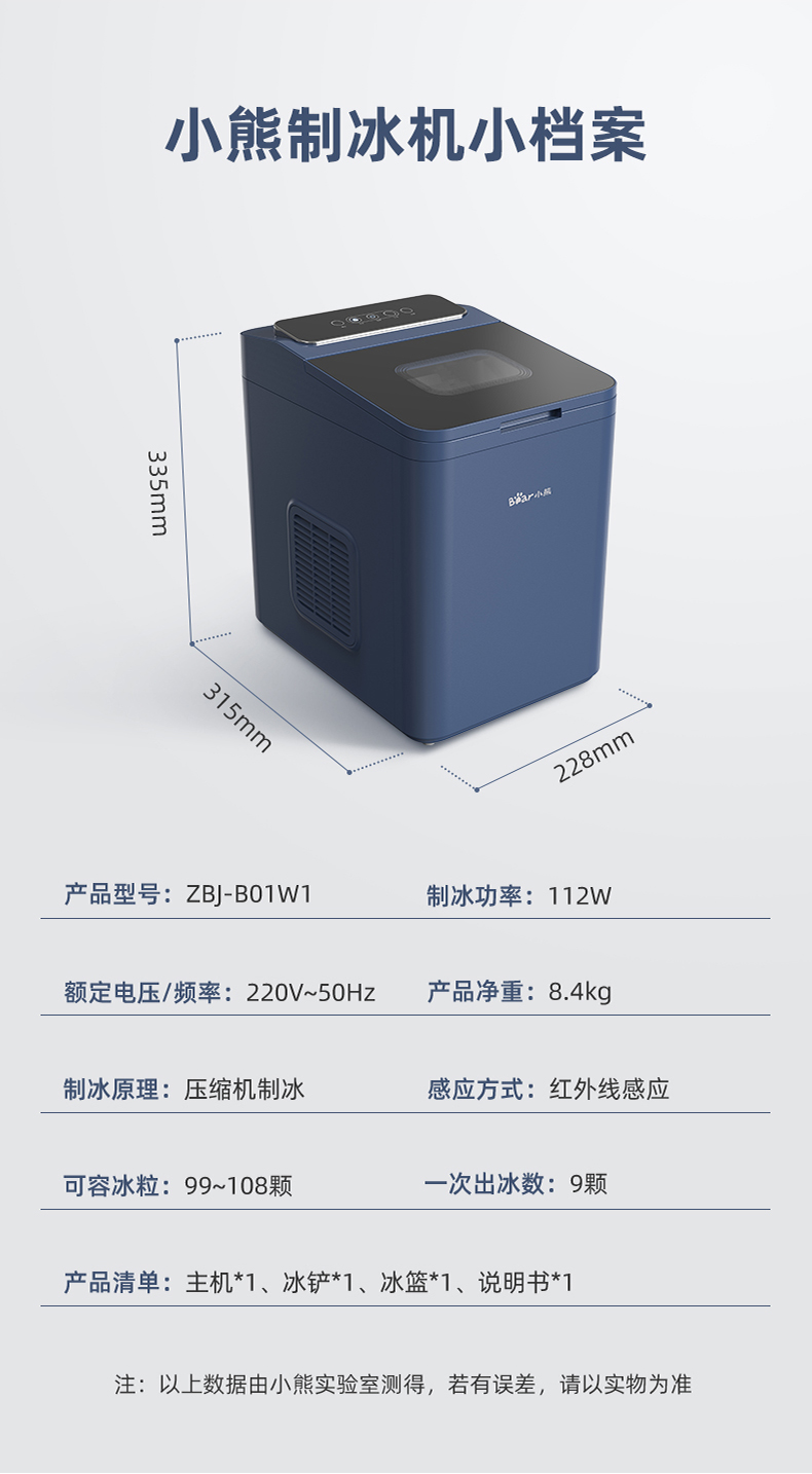 【小程序】小熊制冰机 ZBJ-B01W1 深蓝色 量杯+冰铲