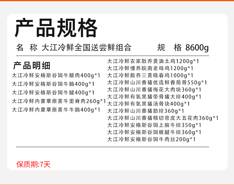 【发出后不支持拦截退货】大江 冷鲜全国送尝鲜组合 8600g