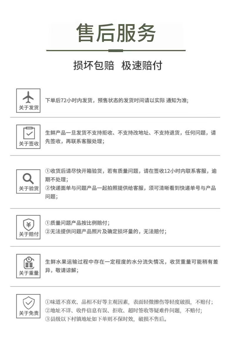 温馨提示:1、本产品为食品下单后不支持7天无理由退换货,不支持拦截&拒收,按损赔付,不接收任何形式的拒收,执意拦截拒收者将承担20元运费,请您谨慎下单。