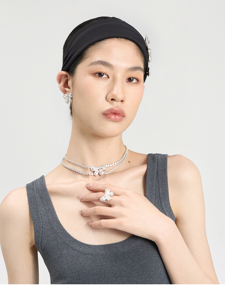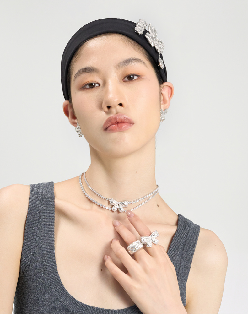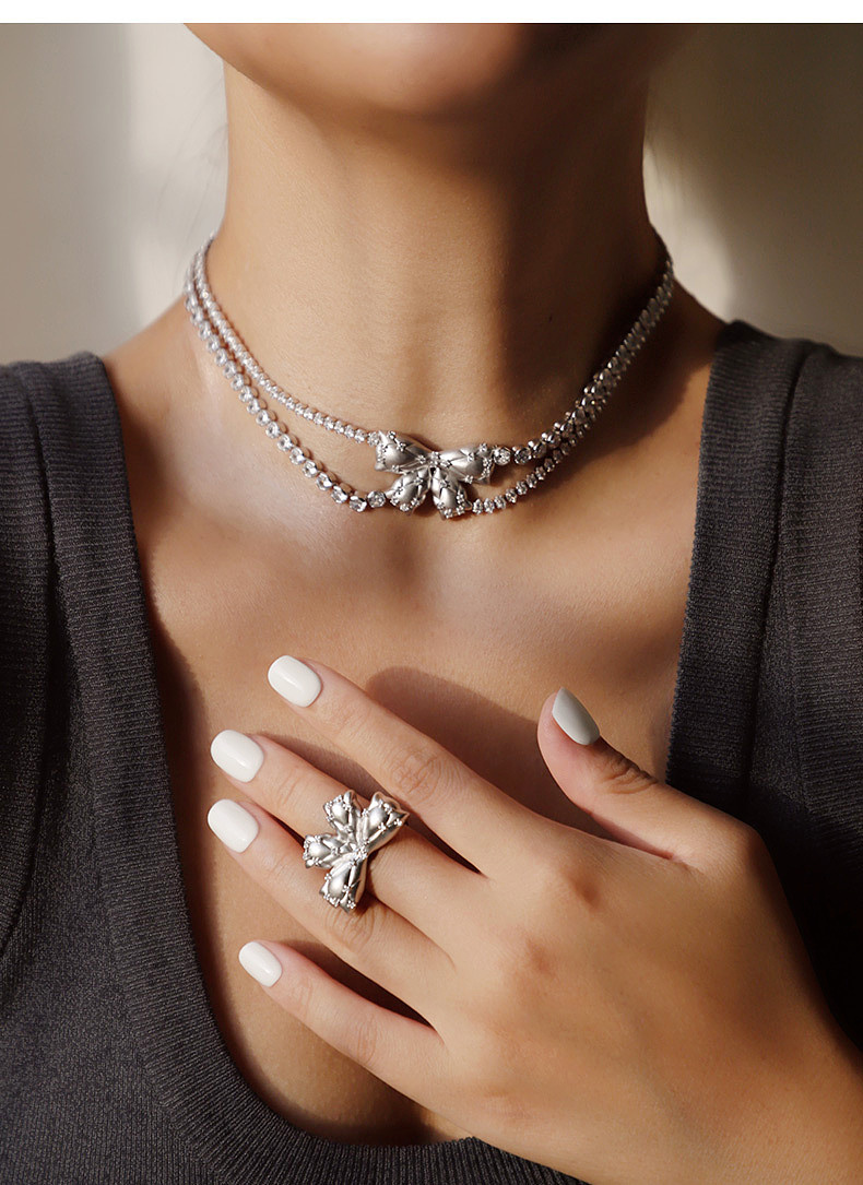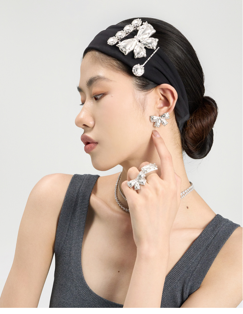 [福利价]lost in echo2024秋季新款小众夸张膨胀枕头银色膨胀蝴蝶结戒指女