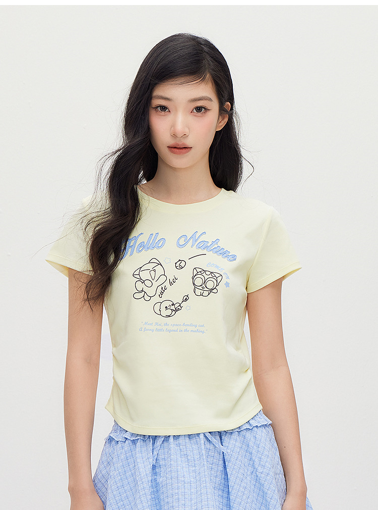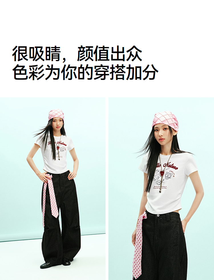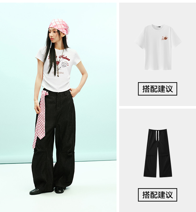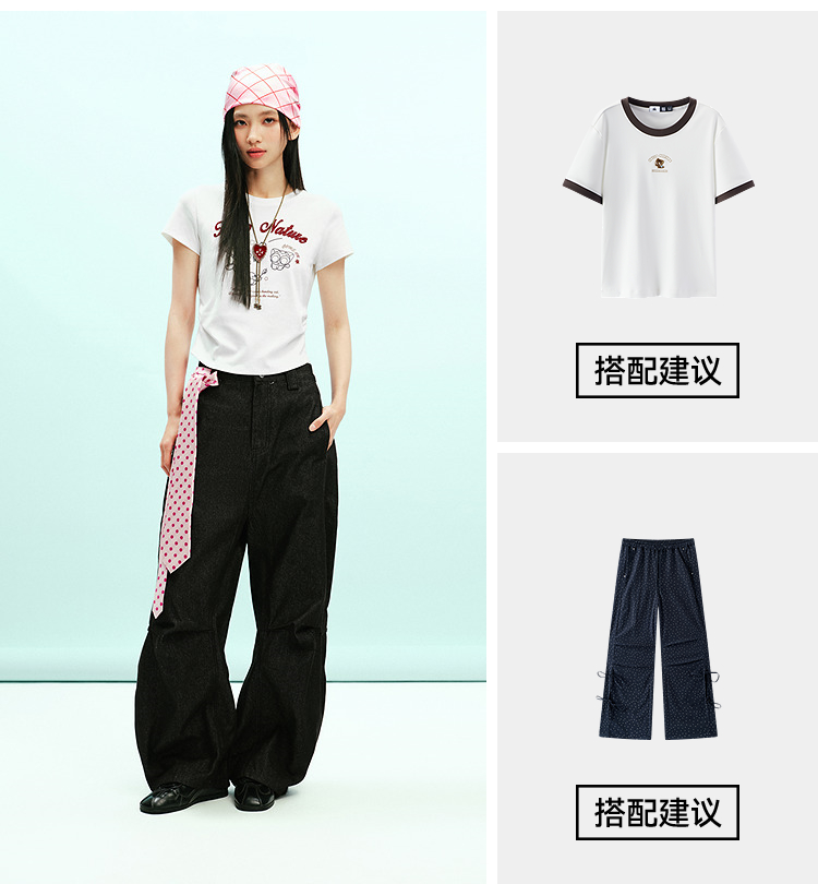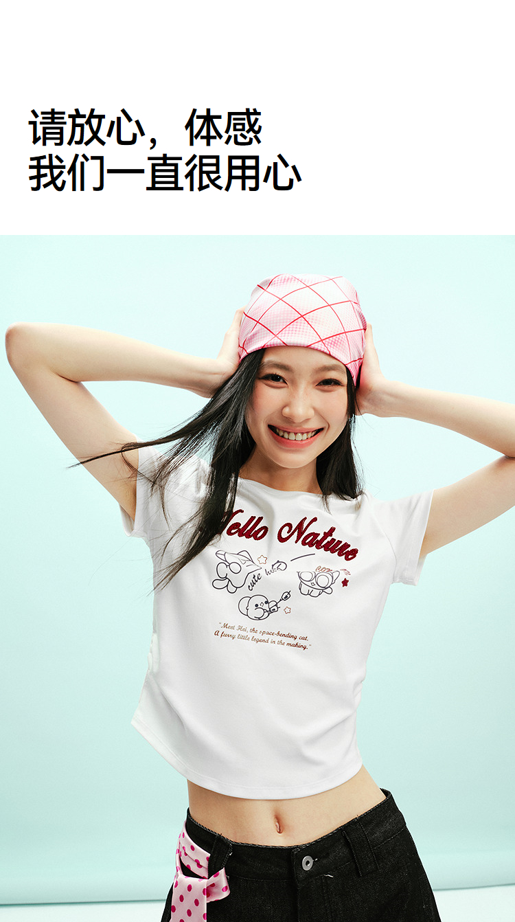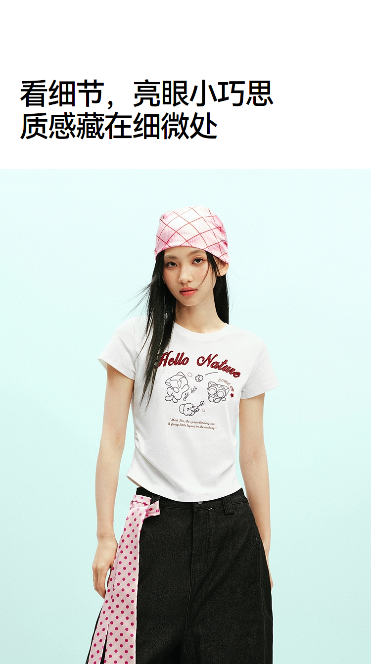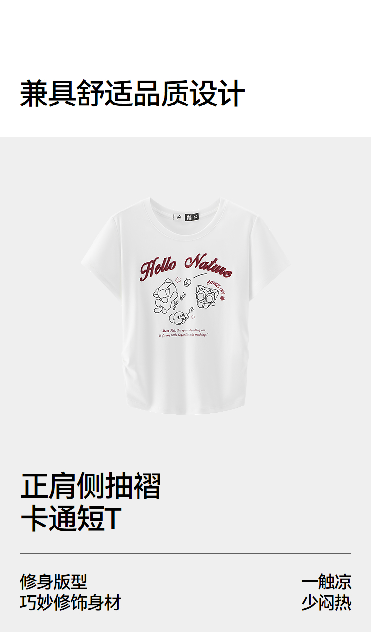 凉感T|森马罗小黑短袖T恤女夏短款修身正肩2026新款趣味显瘦衣服