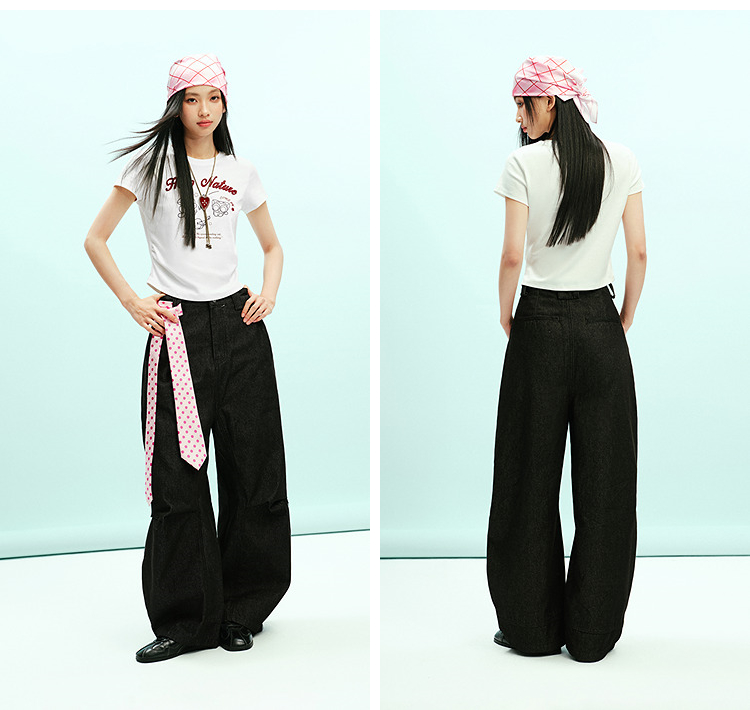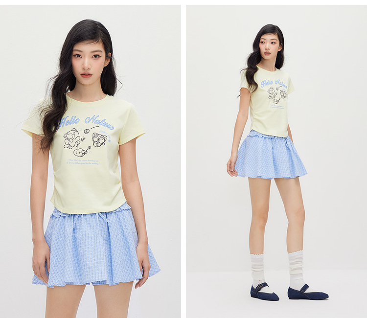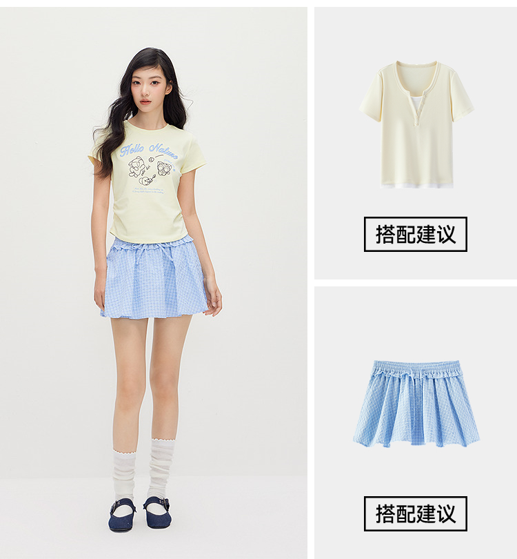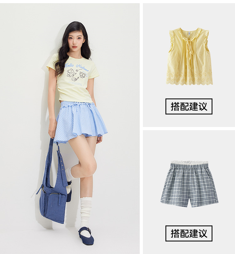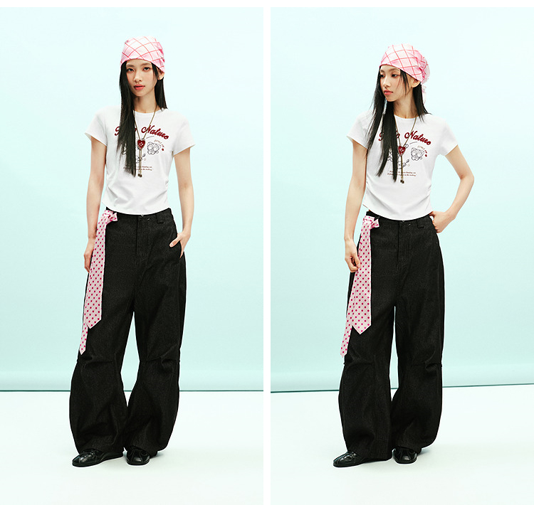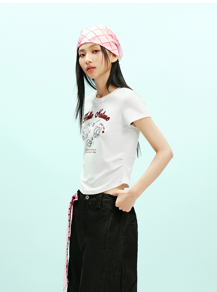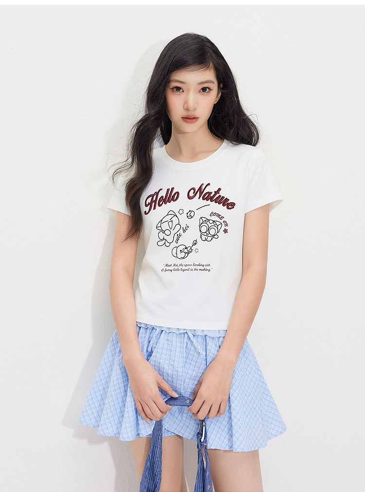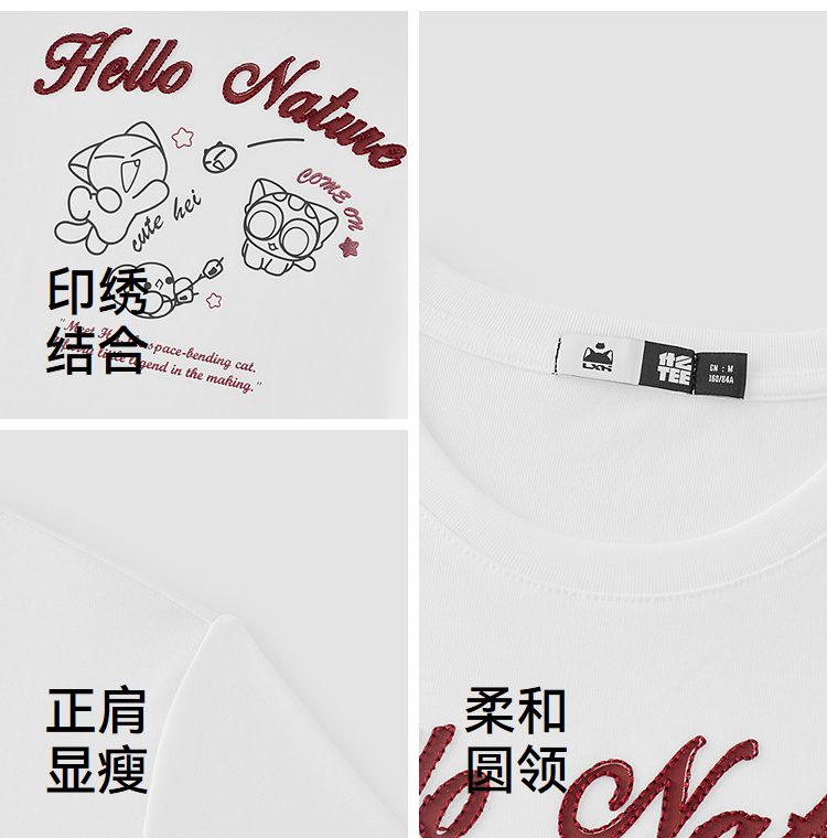 凉感T|森马罗小黑短袖T恤女夏短款修身正肩2026新款趣味显瘦衣服