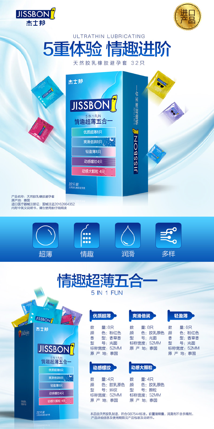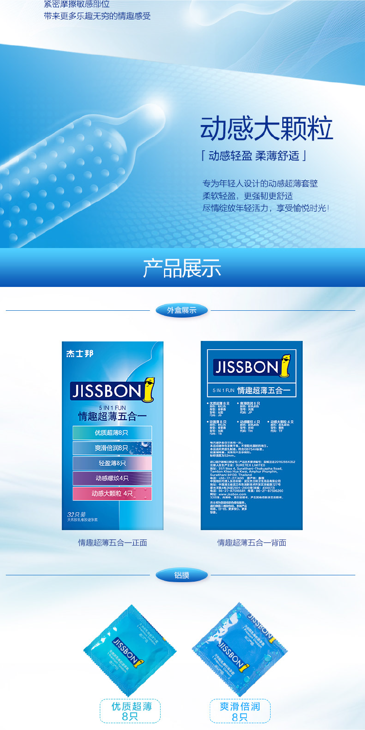 杰士邦情趣超薄五合一32只装(JL32)