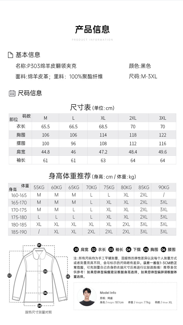 【绵羊皮翻领夹克】商务通勤长袖外套防风保暖皮夹克