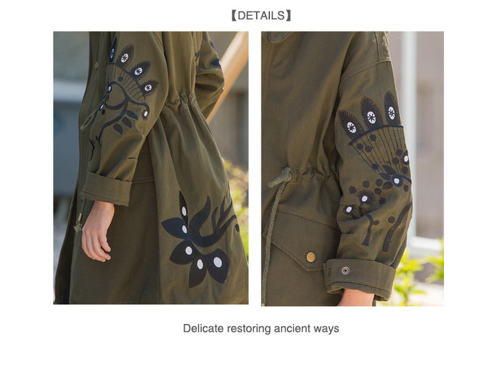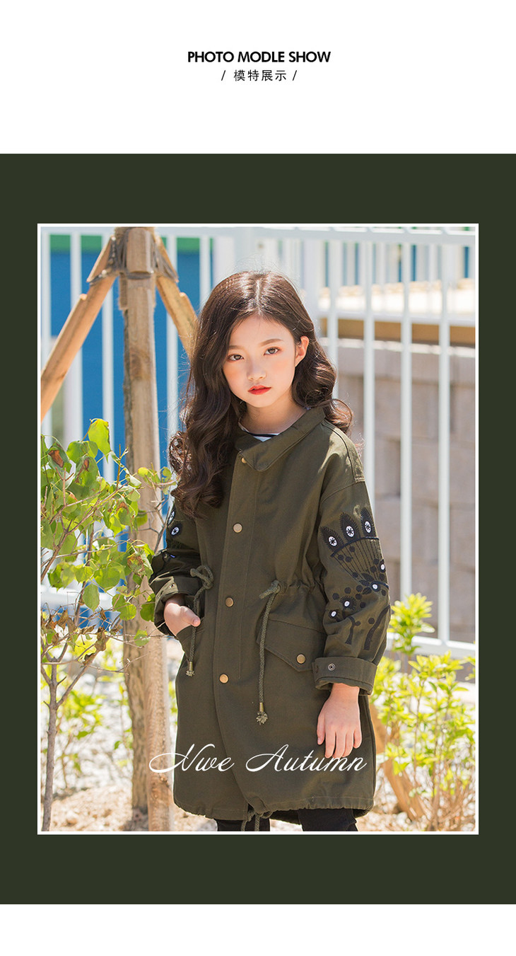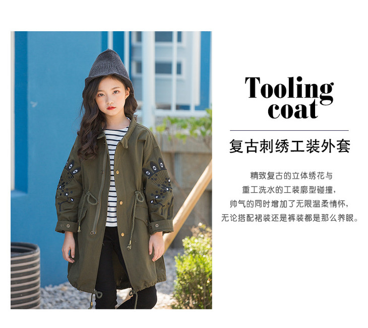 【童装】女童冬季宽松外套中大童纯棉刺绣中长款韩版童装风衣
