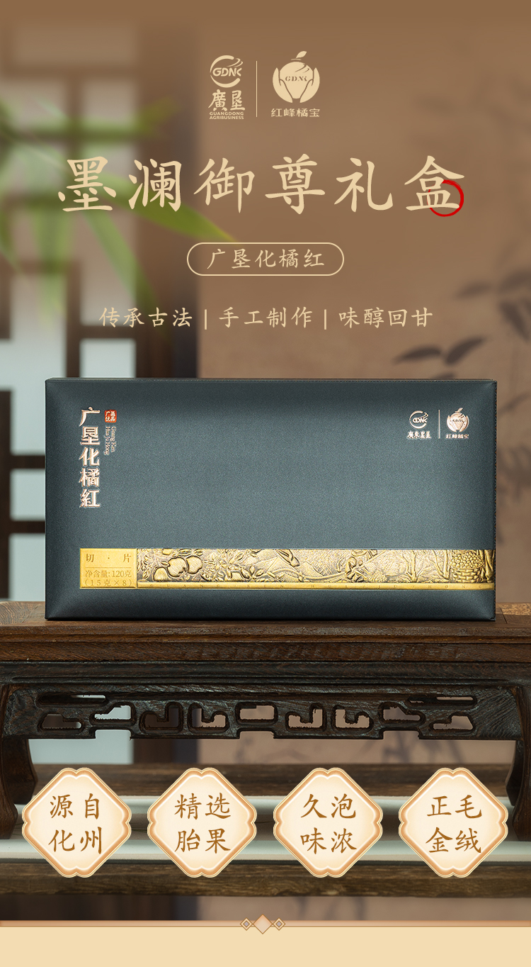 【广垦】【红峰橘宝】化橘红切片精品灰黑色礼盒120克(20盒/箱)