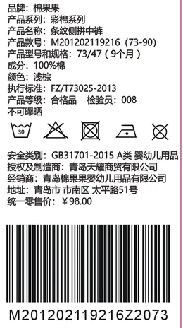 棉果果夏季新疆彩棉纯棉男童女童条纹侧拼中裤短裤M201202119216
