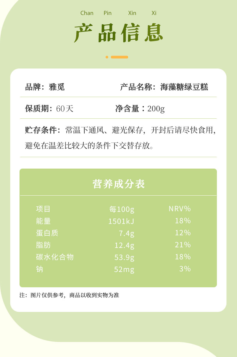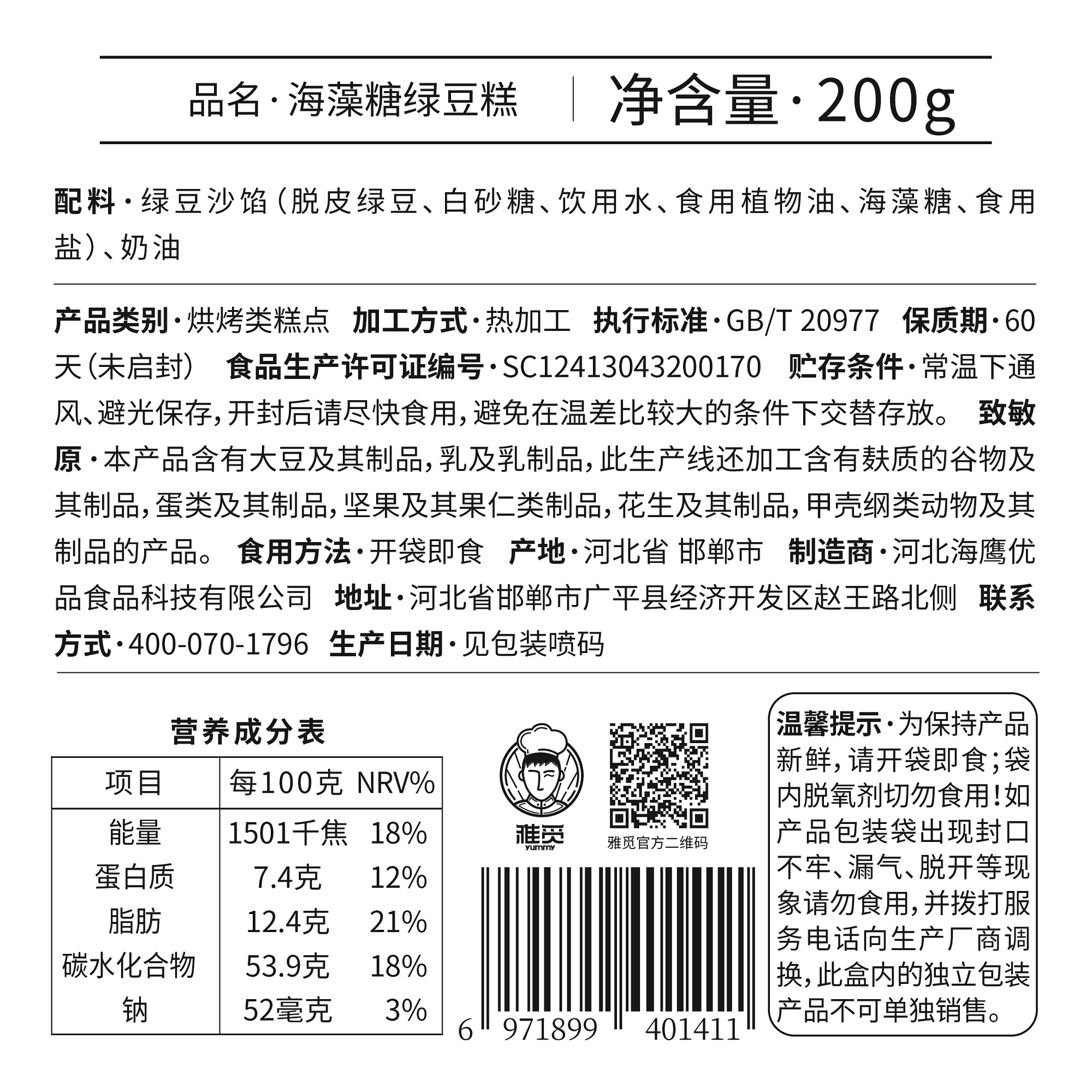 雅觅 海藻糖绿豆糕200g 8枚经典绿豆饼老式传统糕点特产点心小吃茶点 甜点小零食