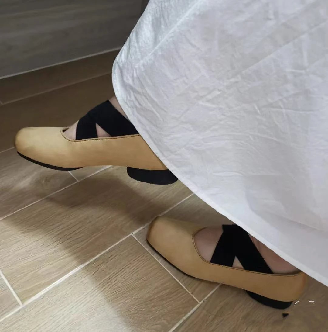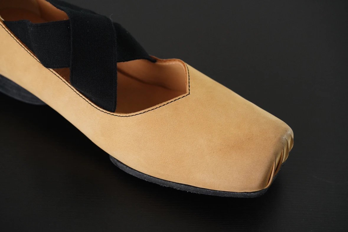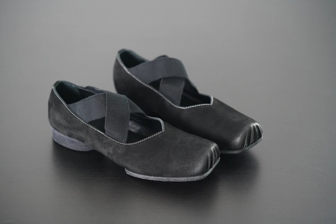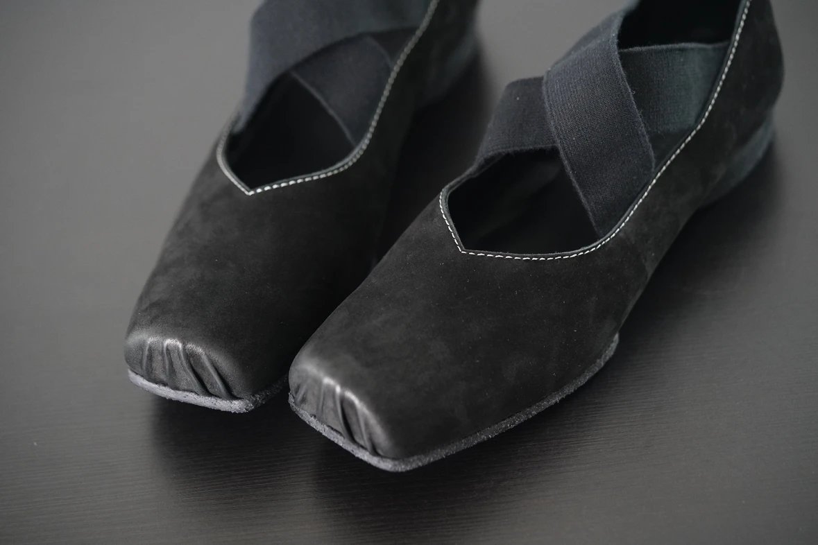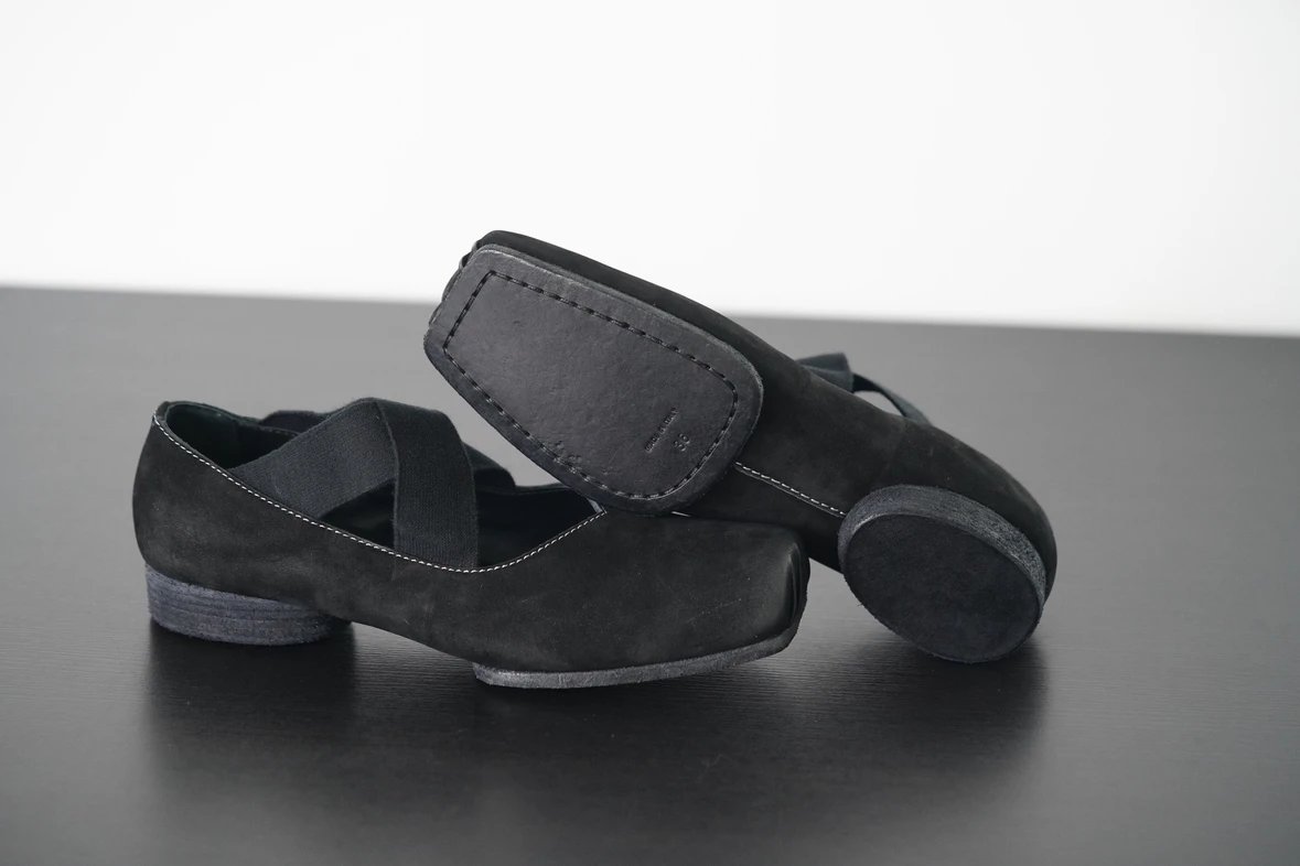 渠道货 UMA经典芭蕾舞鞋 暗黑风手工鞋 猪鼻子绑带方头单鞋