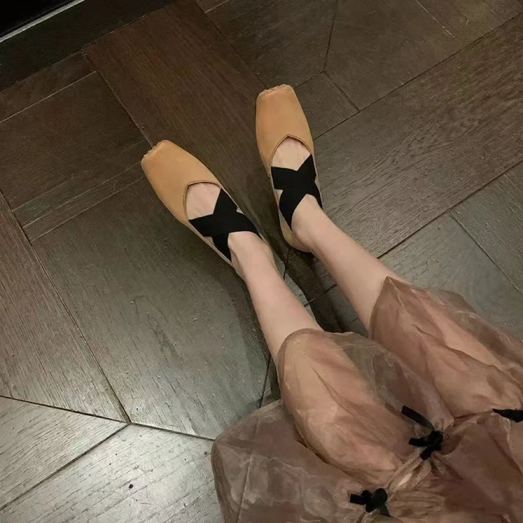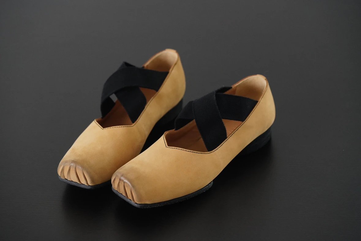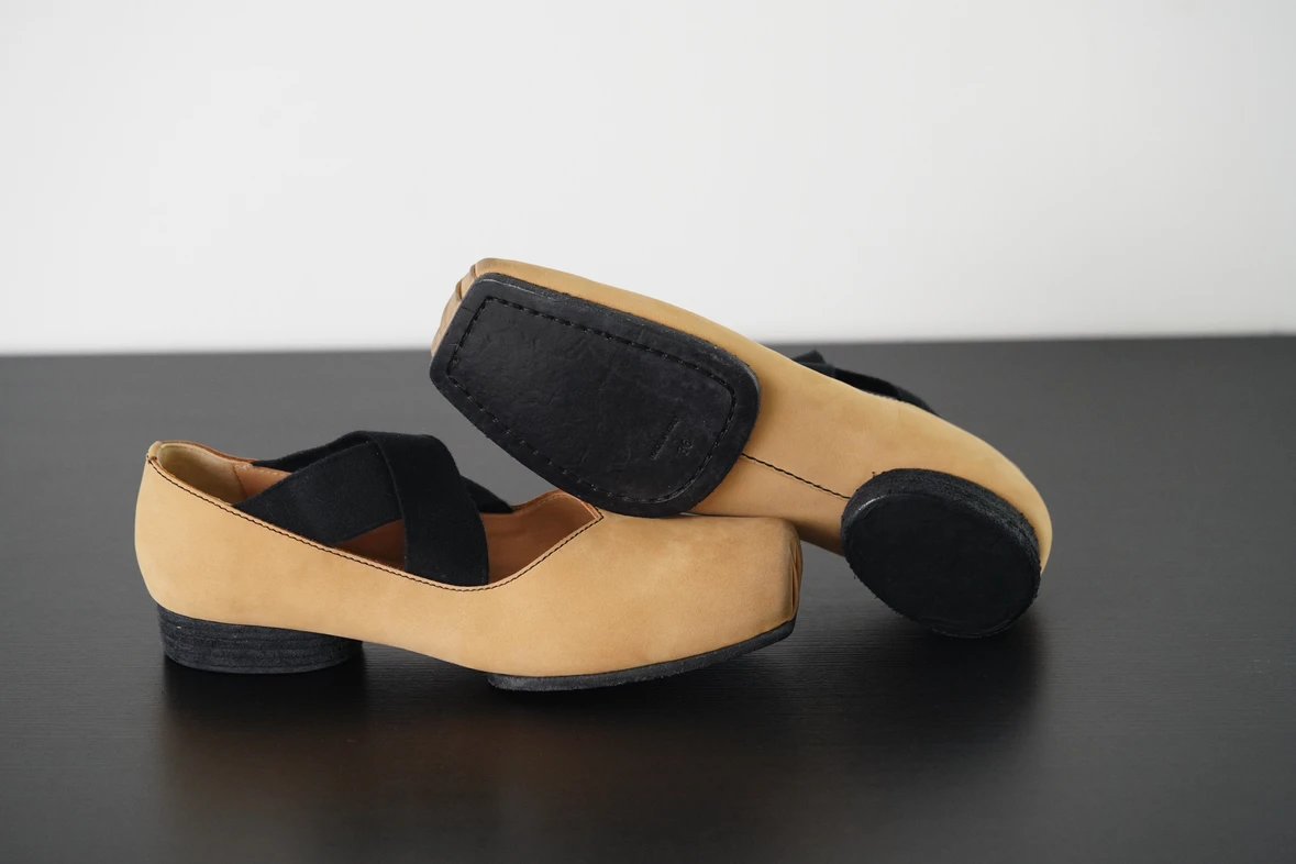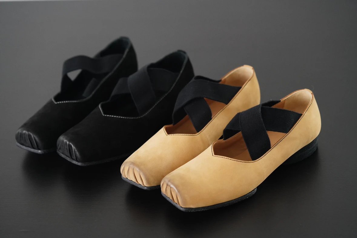 渠道货 UMA经典芭蕾舞鞋 暗黑风手工鞋 猪鼻子绑带方头单鞋