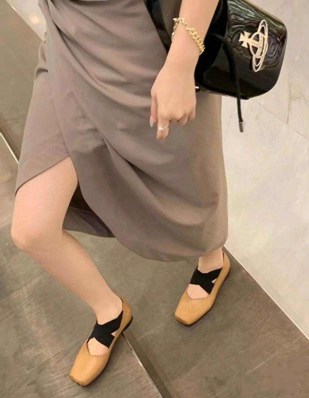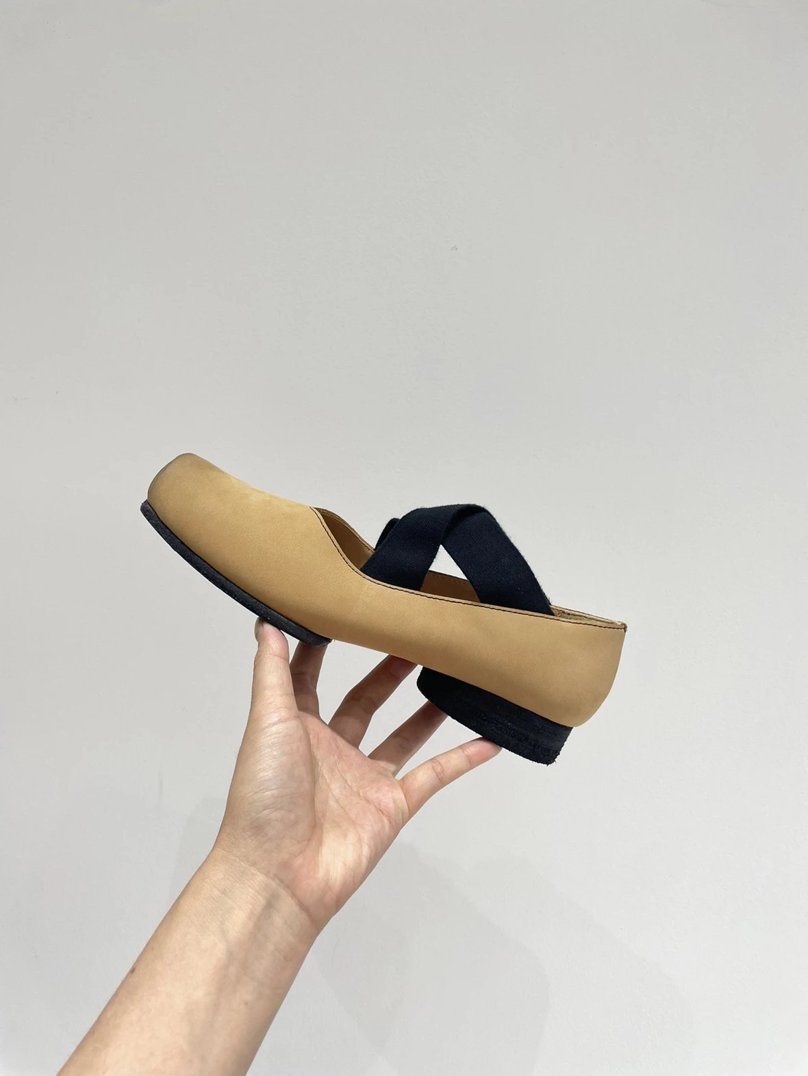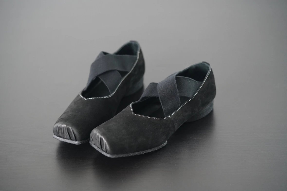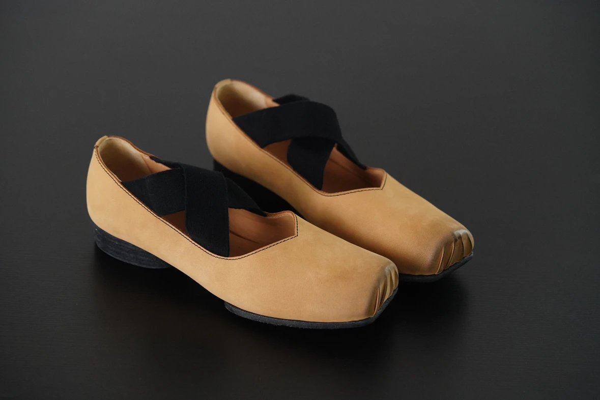 渠道货 UMA经典芭蕾舞鞋 暗黑风手工鞋 猪鼻子绑带方头单鞋