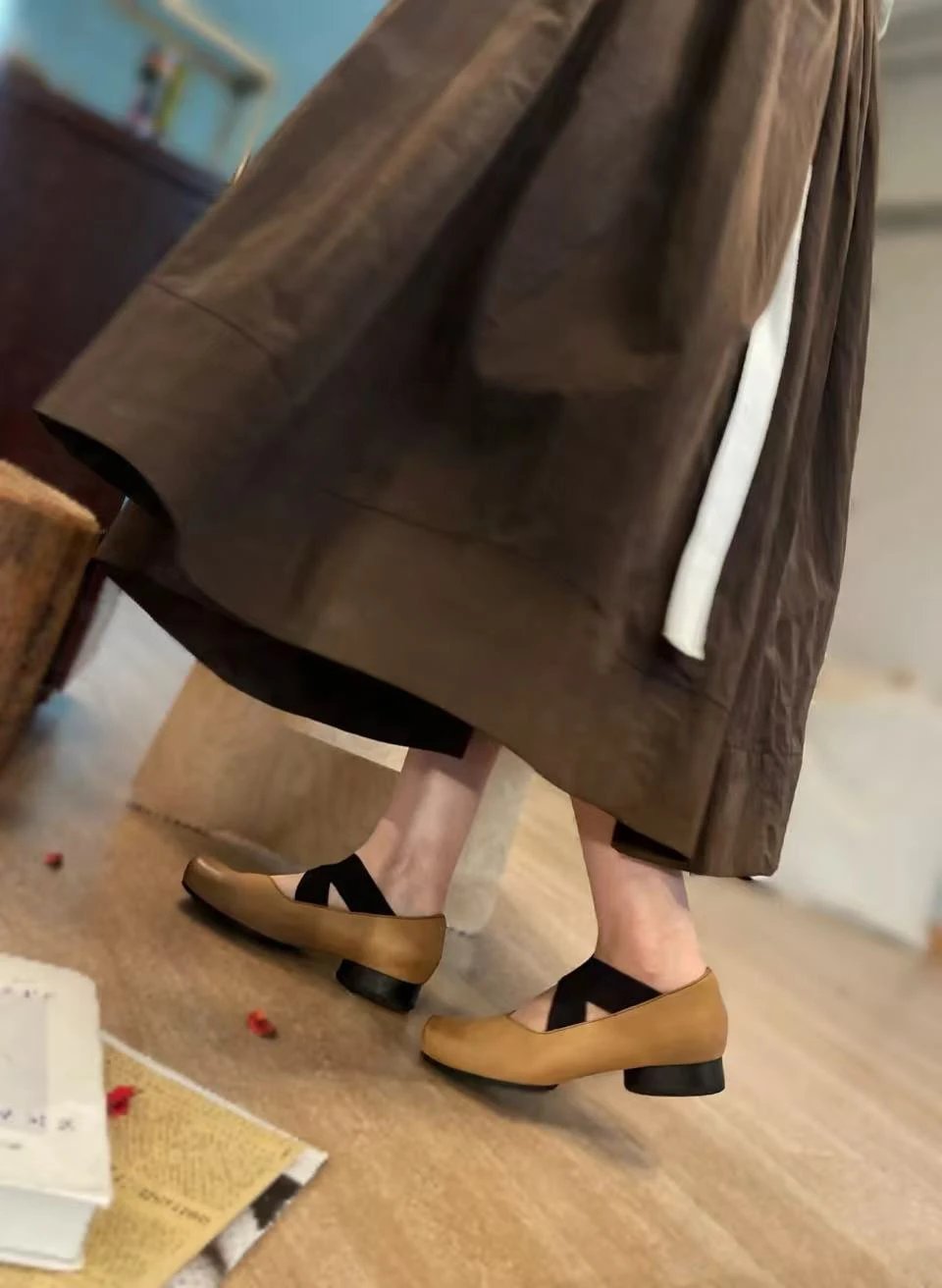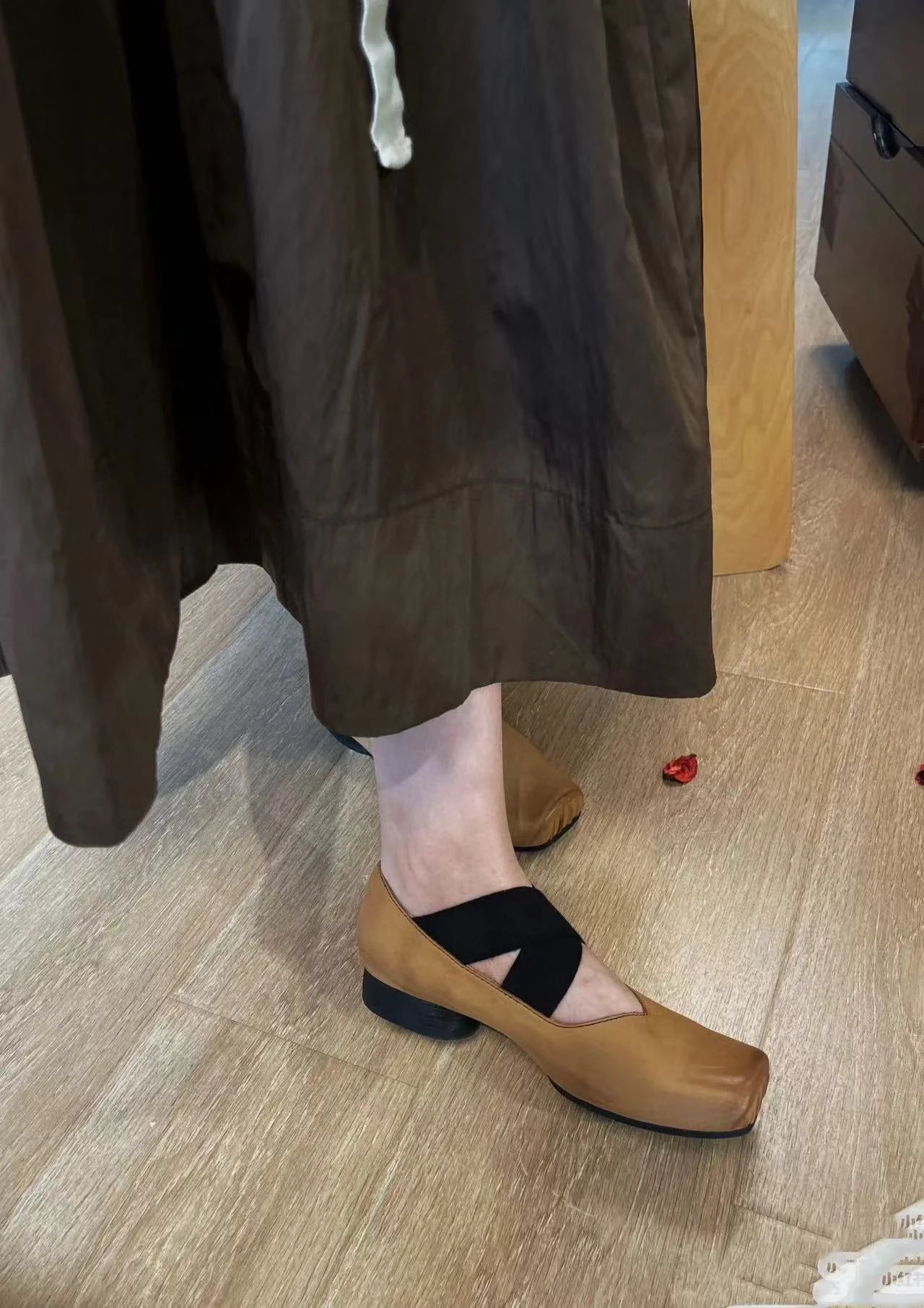 年度必入 买手店 缪小姐金币乐福鞋 麂皮棕/黑色开边珠牛皮单鞋