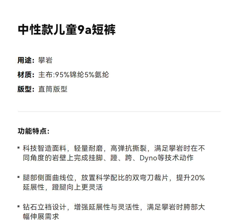 KAILAS凯乐石 中性款儿童9a短裤 KG2535339