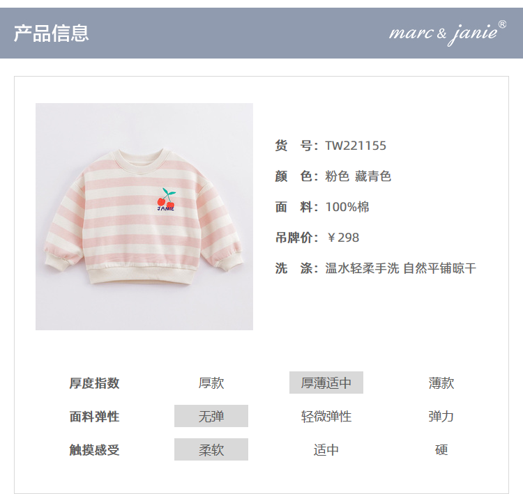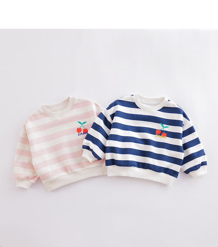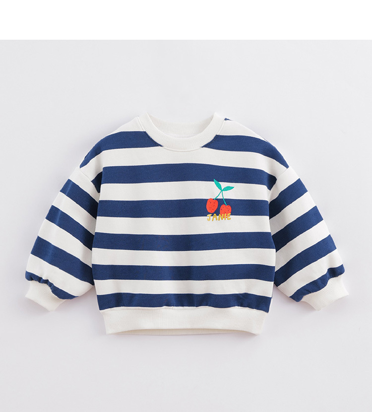 马克珍妮春装新款 男女童条纹印花拉绒卫衣 儿童上衣221155