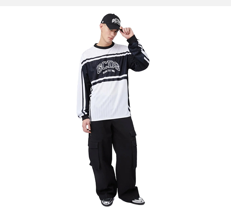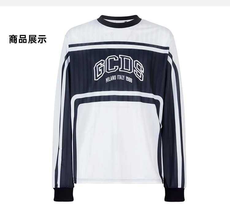 GCDS 男士字母徽标印花棉质圆领长袖T恤 黑色 B1CU2203JH3 99
