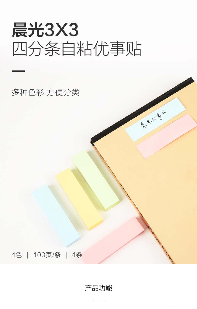 晨光(M&G)文具100页4色便利贴 粘性标签贴姓名贴 记事留言贴优事贴便签本子 4条装YS-13