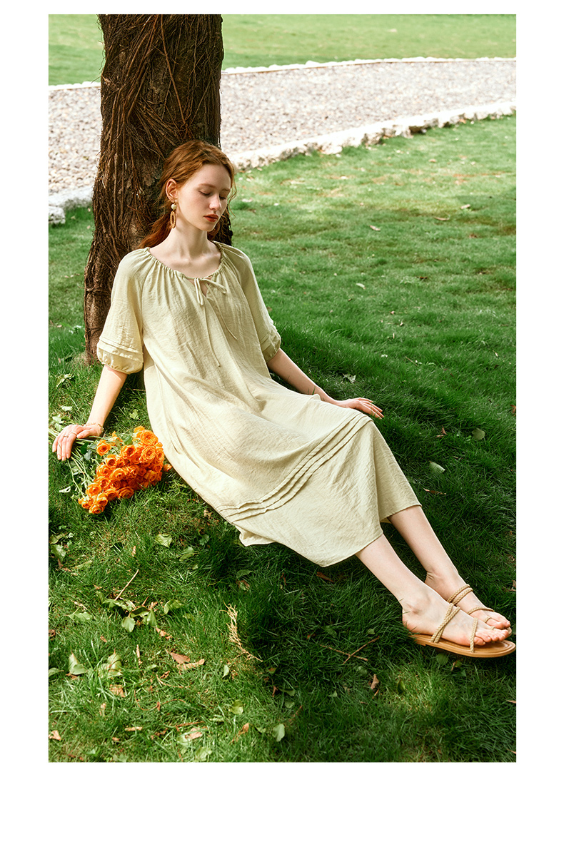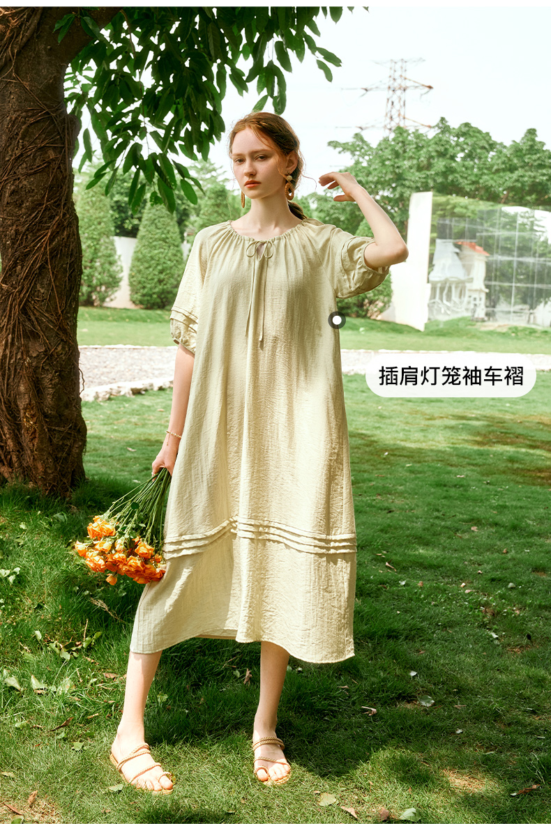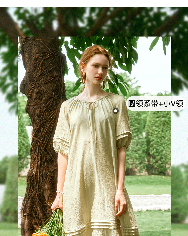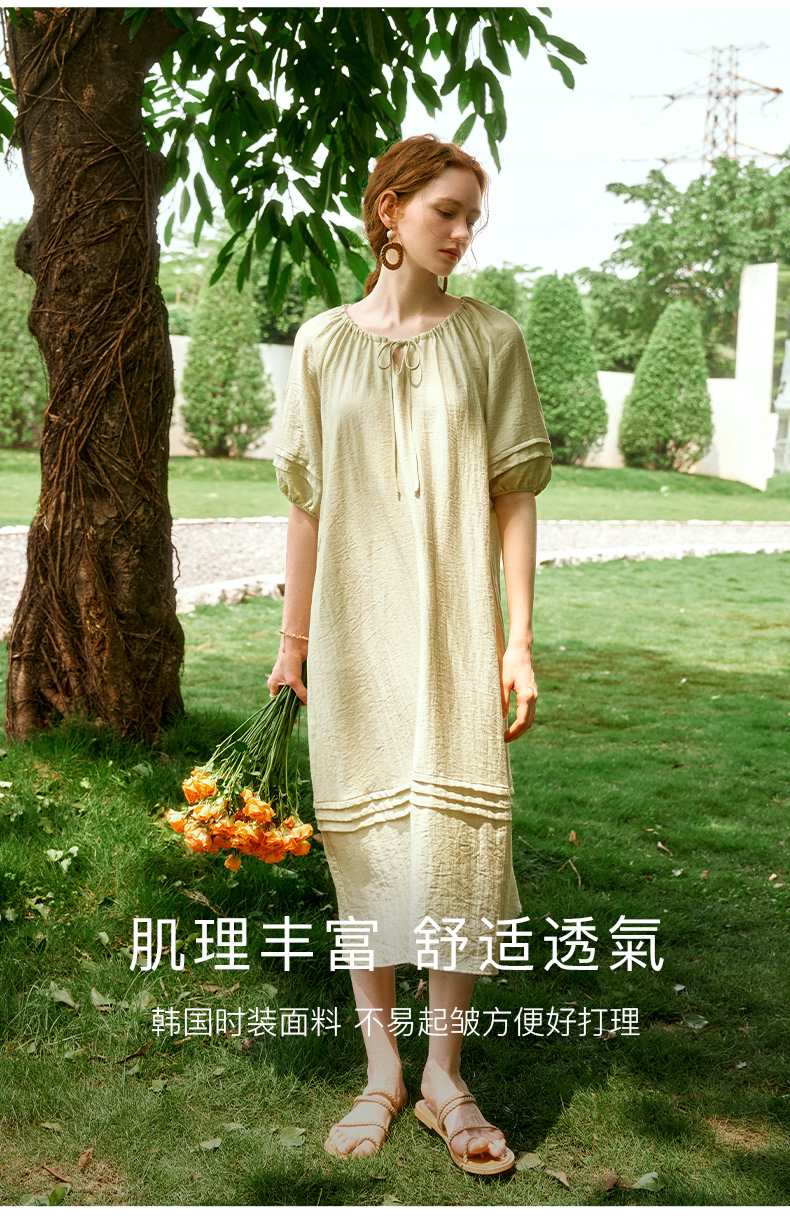 OLrain欧芮儿法式连衣裙女夏季2024年新款时尚松弛感田园风长裙