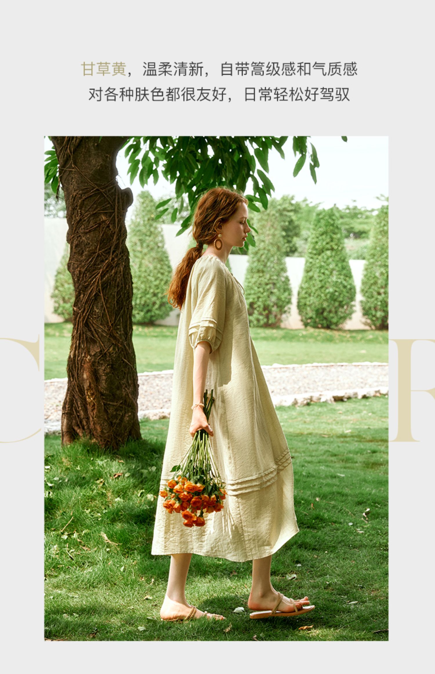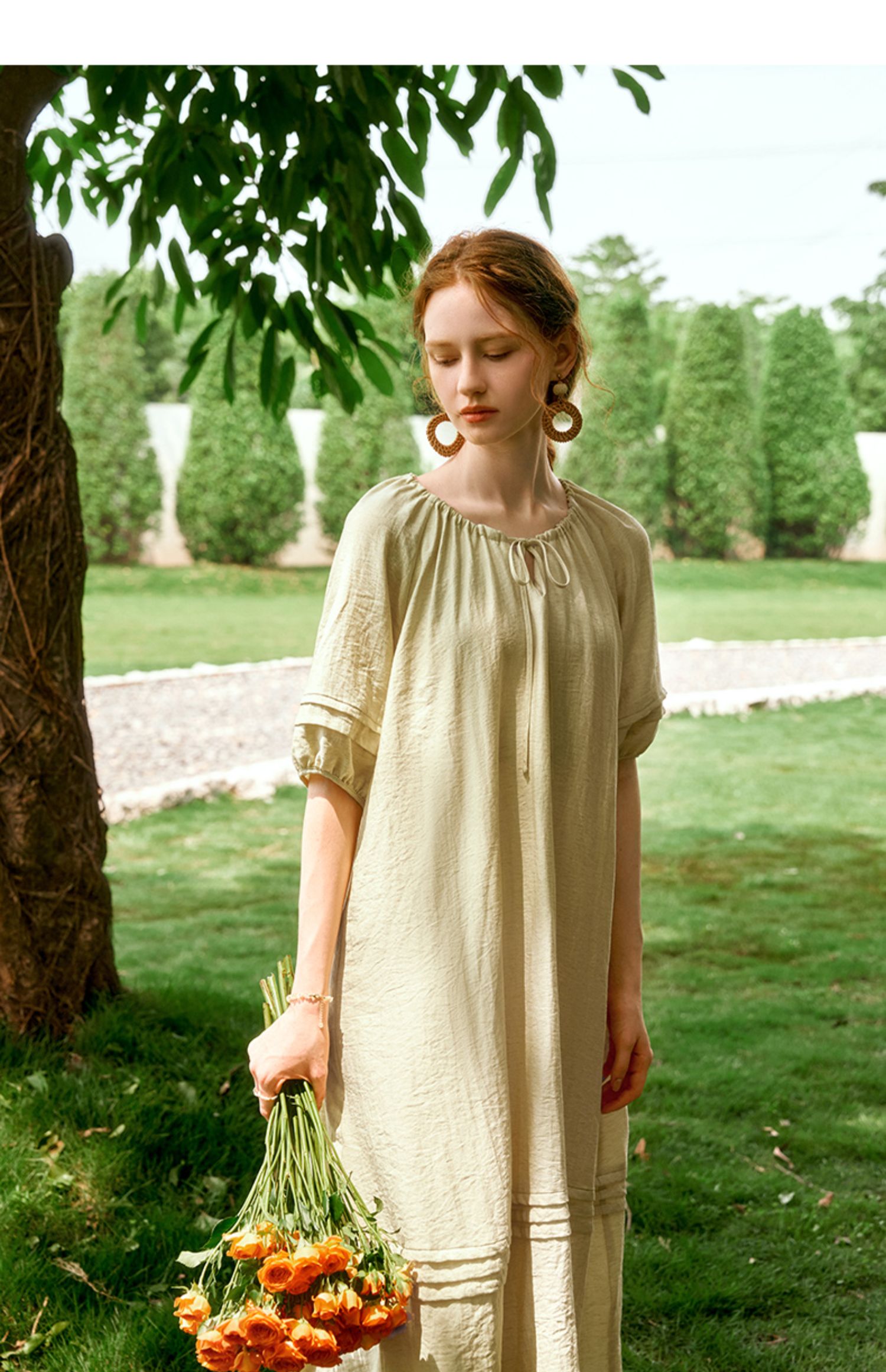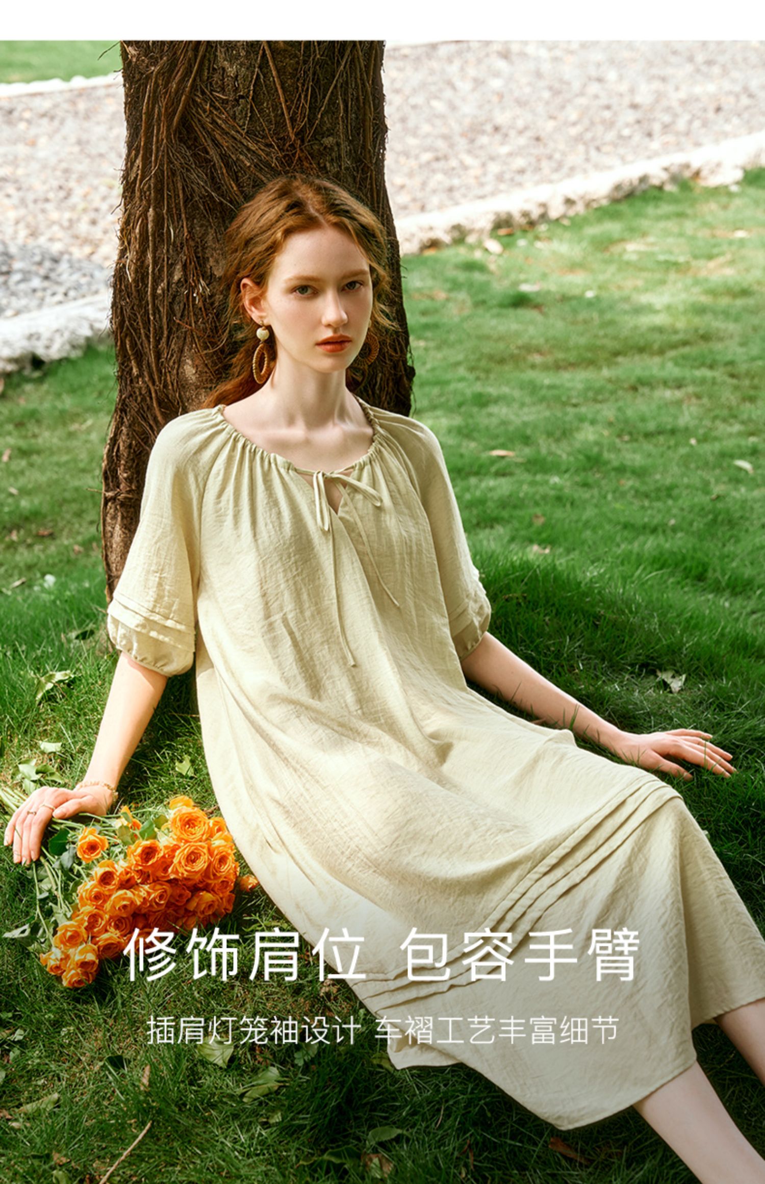 OLrain欧芮儿法式连衣裙女夏季2024年新款时尚松弛感田园风长裙