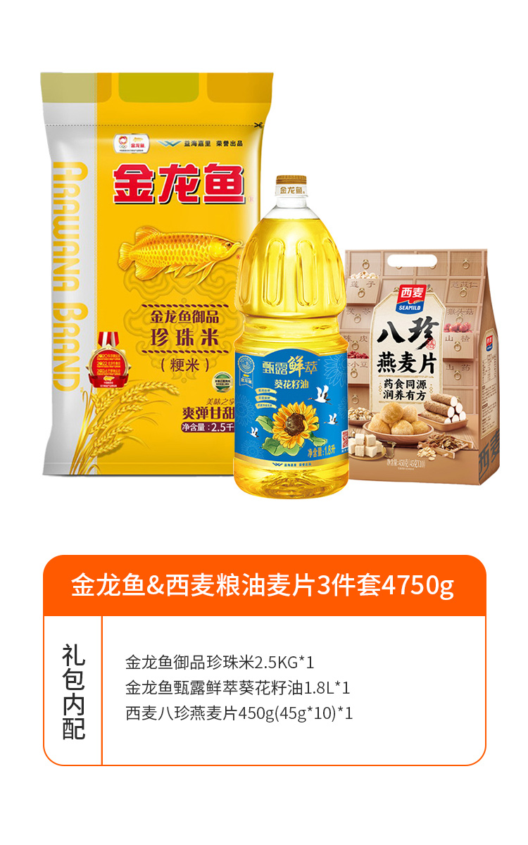 金龙鱼&西麦粮油麦片3件套4750g