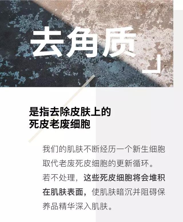 化学去角质就是运用化学物质来去除死皮细胞。果酸、或使用含有AHA(果酸)或BHA(植物酸)的保养品都属于化学去角质。 AHA能软化角质层,借此分解死细胞,而BHA能进一步深入毛孔,清除污垢.