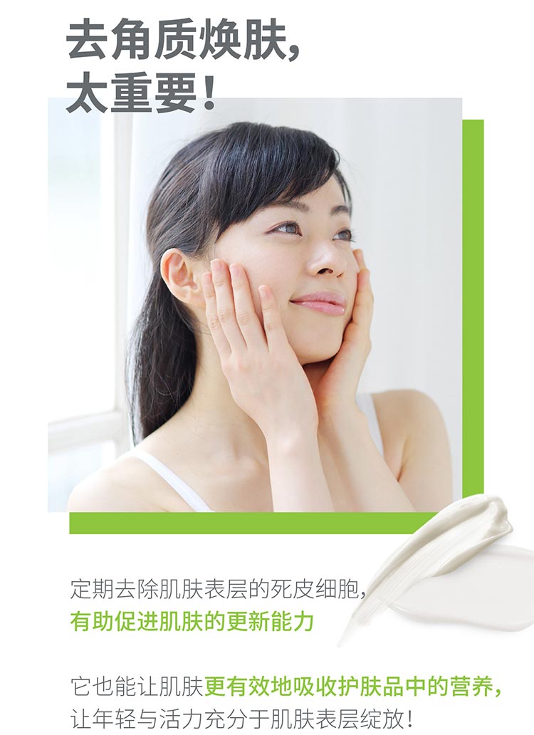 做好物理去角质的关键在于——温柔善待你的肌肤。尽可能寻找有效且温和不伤害肌肤表层的产品。有些柔珠颗粒太粗大,不仅达不到效果,不断搓揉还会伤害肌肤表层