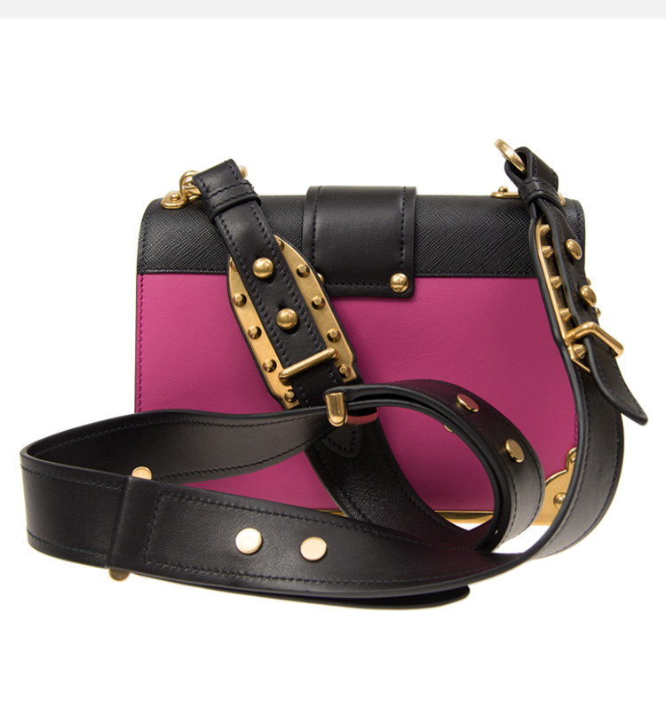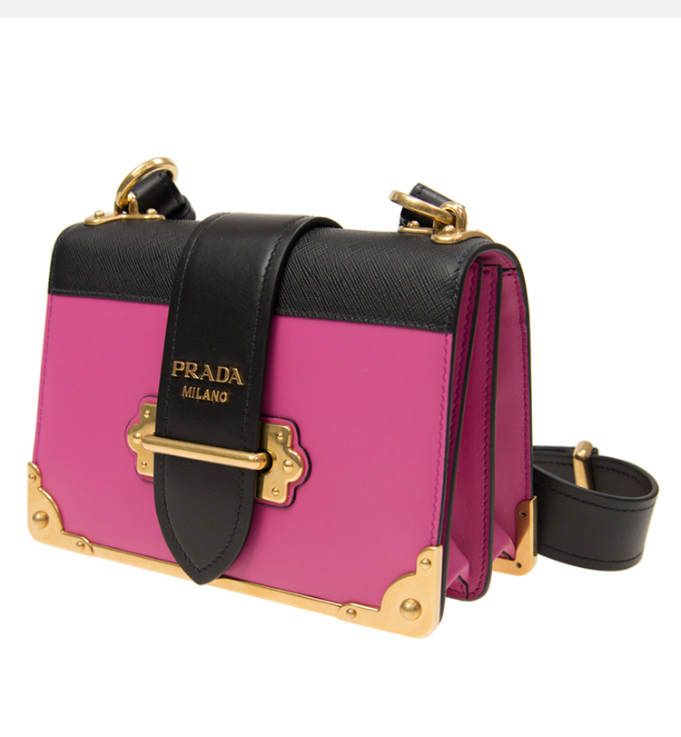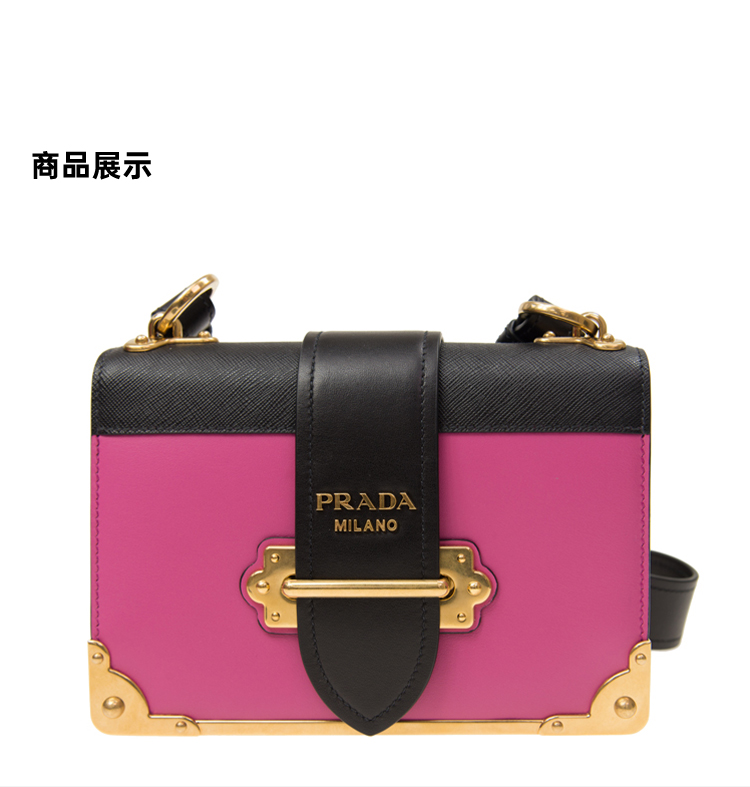 PRADA 普拉达 女士 Cahier 系列樱红色黑色牛皮单肩斜挎包 1BD045 2BB0 F0AJ6 OCH