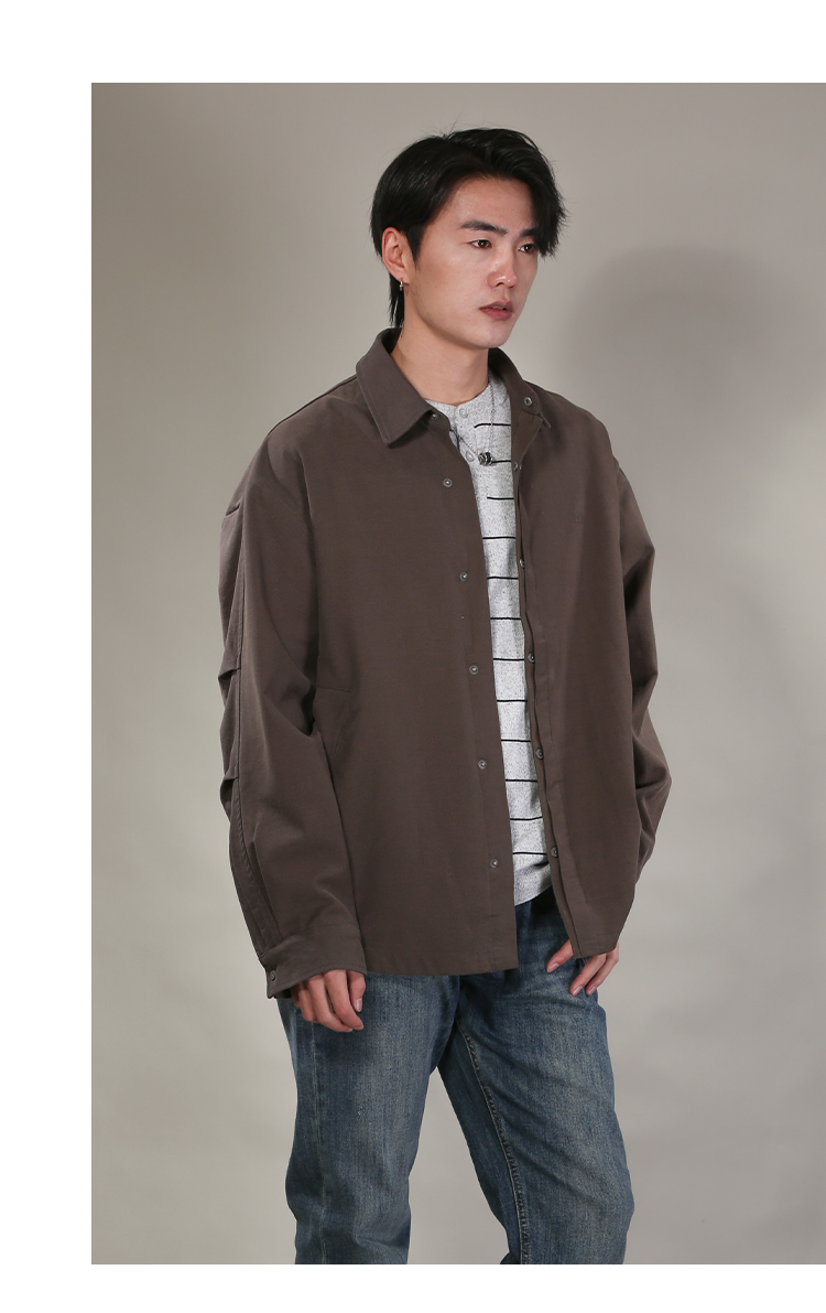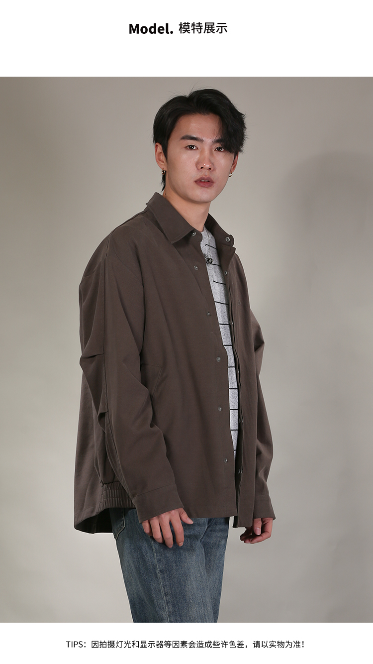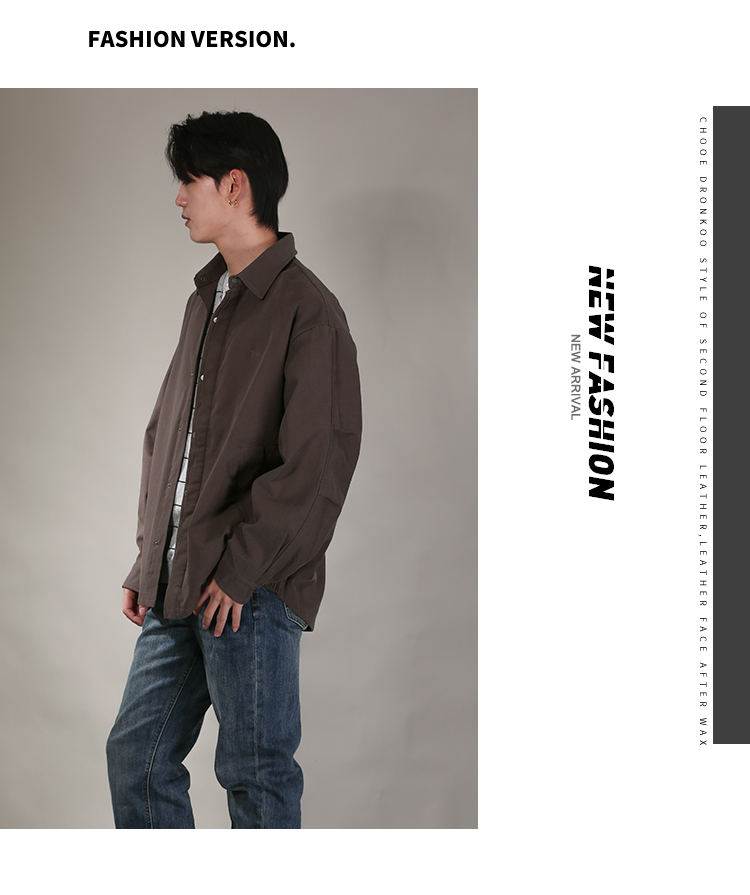 DRONKOO 2026 翻领前襟拼织带两侧橡筋微阔中厚衬衣外套